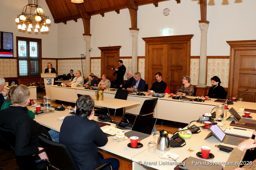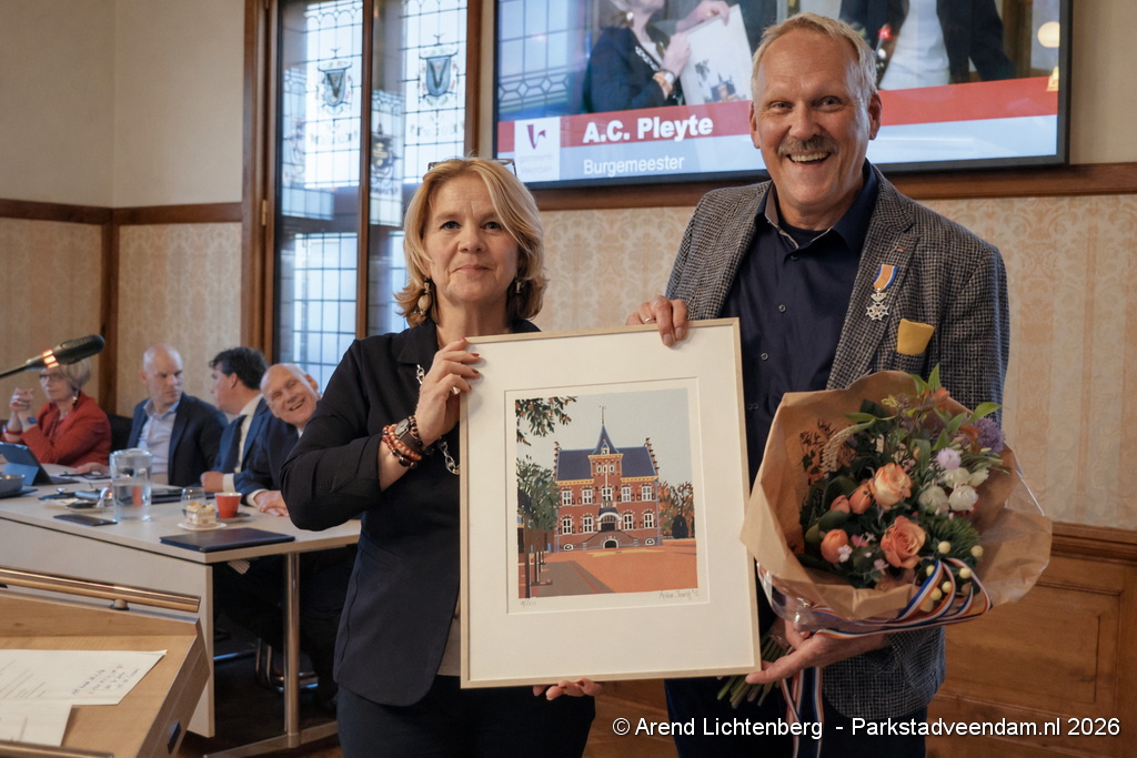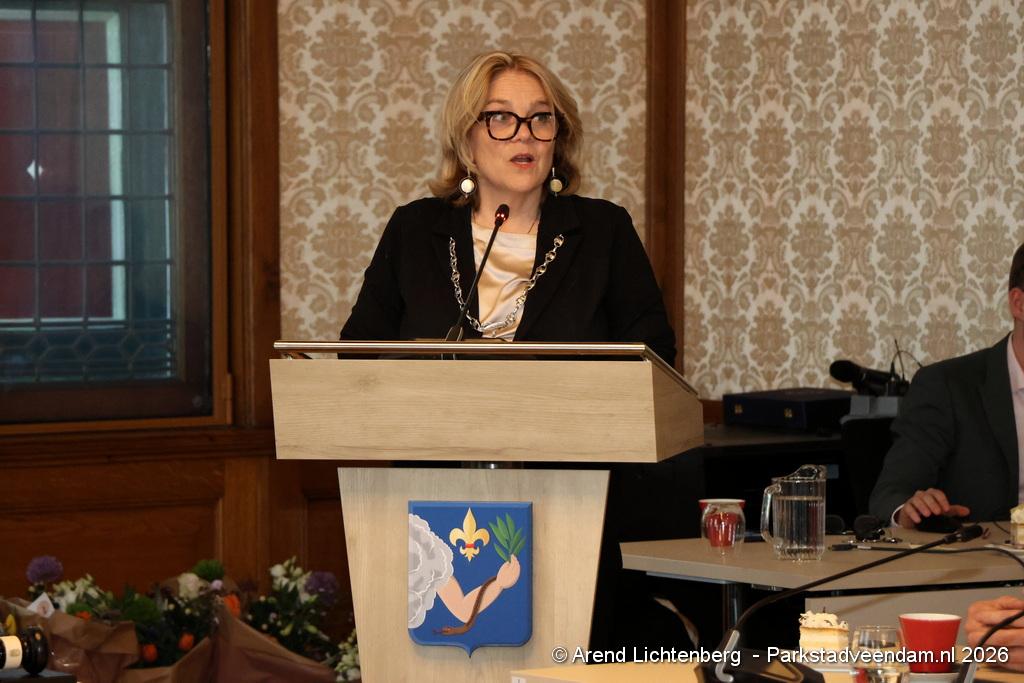 Tijdens de Vergadering Gemeenteraad: Afscheid Oude Raad sprak burgemeester Annelies Pleyte de vertrekkende raadsleden toe. In deze bijeenkomst werd afscheid genomen van Grieto Visser (GB), Nick van Woerkom (GB), Rob Haije (PvdA), Tashin Mete (PvdA), Harry Schoonewille (SP) en Ben Kenters (VoorOns Veendam).