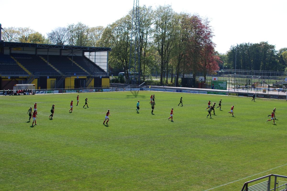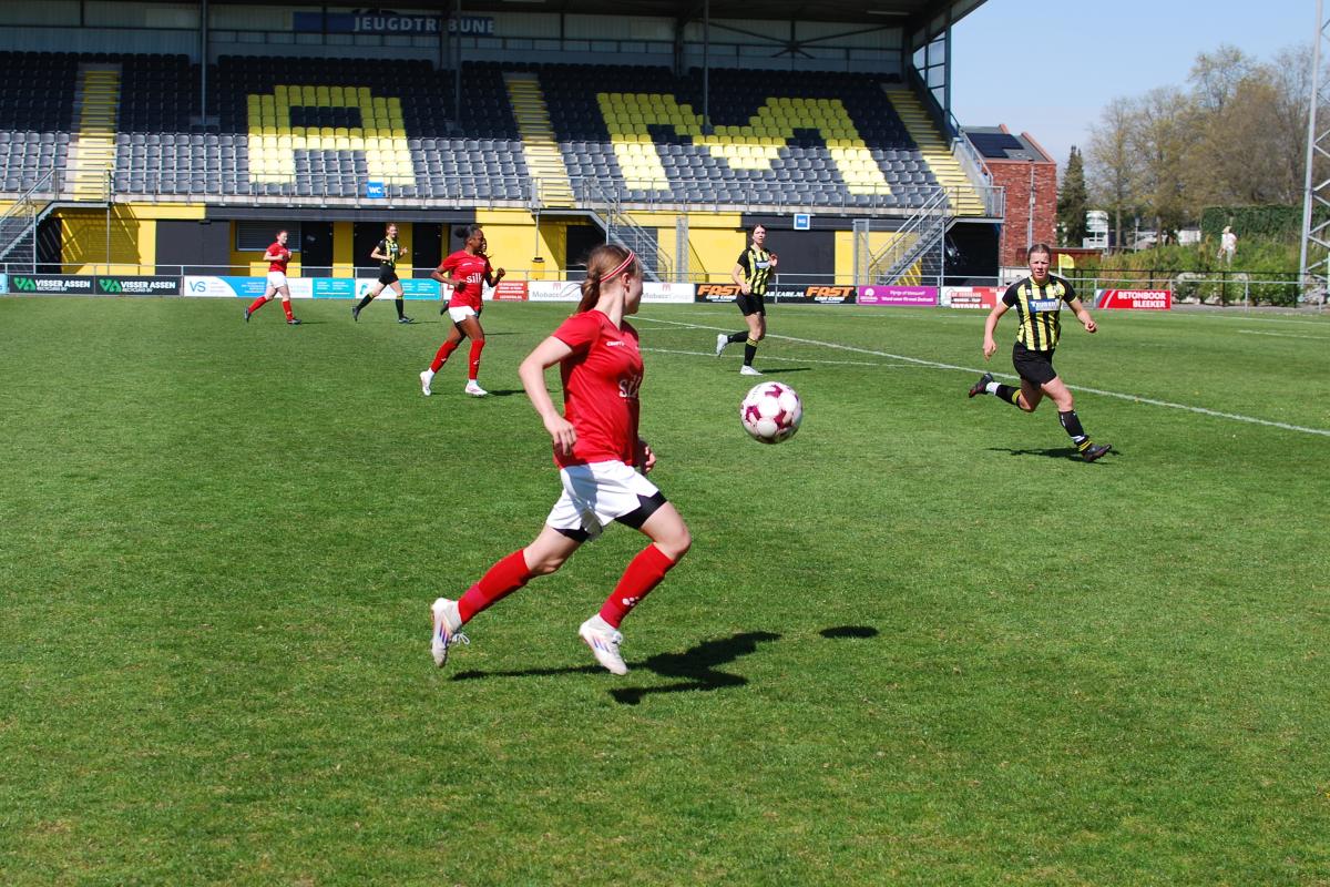 Vond Bente van Vondel dat ook? Kort na de wedstrijd doe ik op het veld met deze strijdlustige verdedigster het flashinterview. Bente: ‘Ik vind het heel zuur. We bikkelen zo hard. Het zit een beetje mee en dan krijgen we zo’n vreselijke kutgoal tegen. Het was van hun kant een hele goede goal maar wij stappen niet op tijd uit naar degene die die voorzet geeft. Ja, dat hadden we als team moeten doen. We knokken ons inderdaad knap terug in de wedstrijd. En dan wordt het chaotisch in de slotfase. Dan zorgen we er anders altijd voor dat we geen doelpunt meer tegen krijgen. Helaas lukte dat vandaag niet. Een puntje was voor ons genoeg geweest. Maar ja, vijf wedstrijden geleden zei ik dat we 15 punten wilden halen. Dat is dus niet gelukt. Dat is jammer. Ja, het klopt wel hoor dat zij elkaar wat gemakkelijker vonden en beter aan de bal waren.’