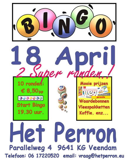 BINGO - We spelen om mooie prijzen, zoals goed gevulde boodschappen manden, vleesschalen, waardebonnen.