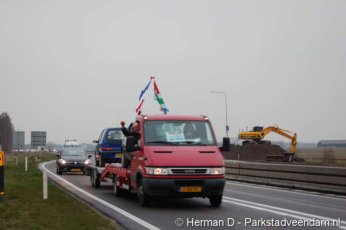 BREED - Vrijdag 7 maart werd er door heel Nederland de protestacties met langzaam rijden op de Nederlandse snelwegen uitgevoerd. Deze landelijke actie was een van de initiatieven van het platform Landelijke Demonstratie 2013, met als doel om aandacht te vragen voor algehele misstanden in de politiek en maatschappij.
