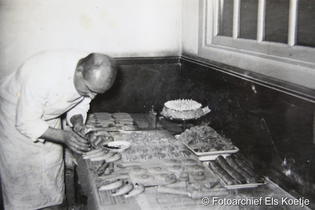 Voor Sinterklaas maakte bakker Wemmenhove de marsepeinfiguren. Op de marsepeintafel bij het uitgestalde fruit en andere figuren lagen ook de dubbelstel kunstgebitten. Ze werden grif verkocht.