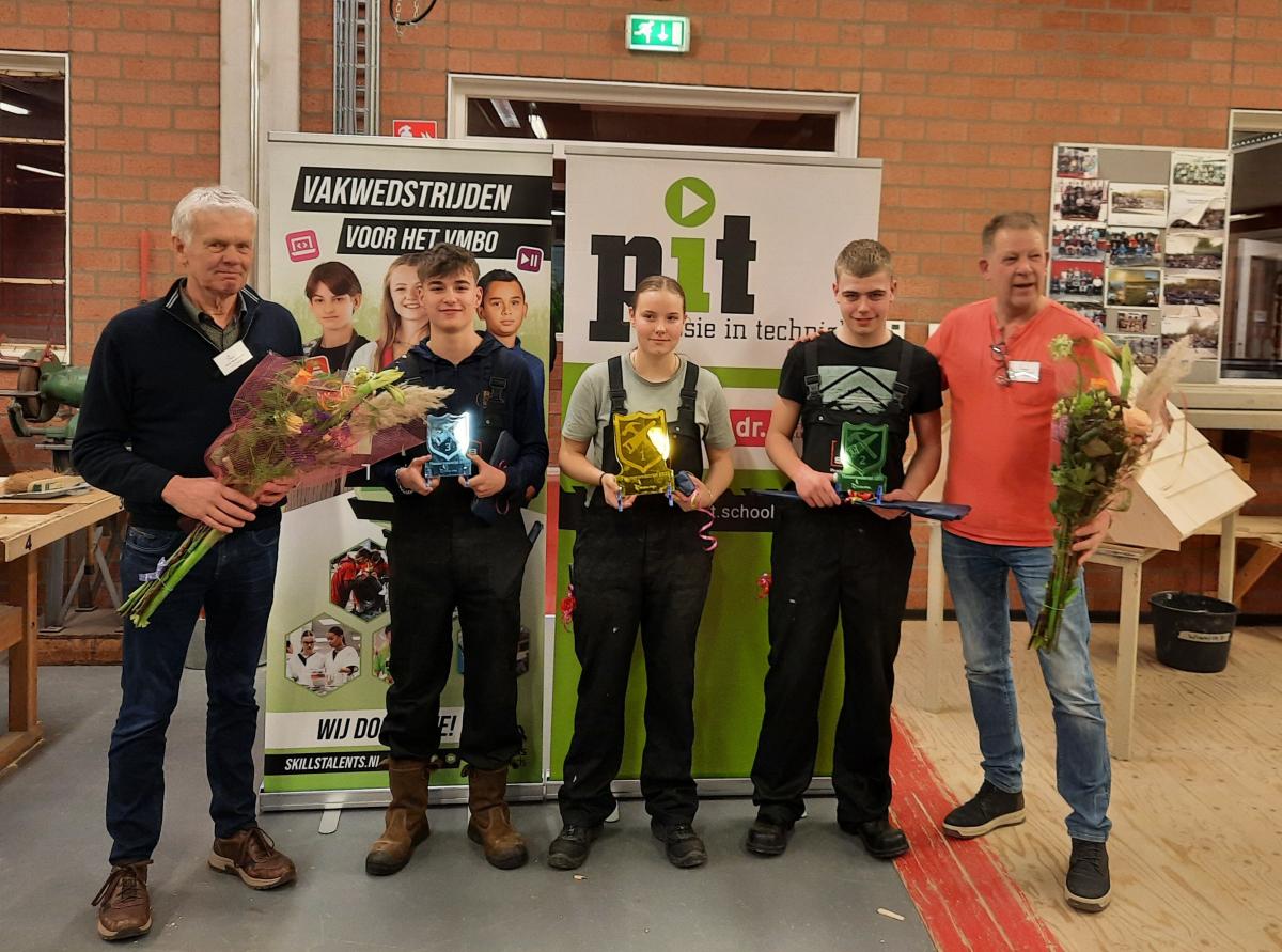 Na een spannende middag en grondige beraadslaging door de jury werd Phaedra Letsch tot winnaar uitgeroepen, met Wessel Brouwer op de tweede plaats en Toine van der Beek op de derde plaats. Phaedra en Wessel gaan door naar de vmbo-beroepenwedstrijd timmeren op 11 en 12 februari bij SSPB Praktijkcentrum Bouw. Quinten Boonstra zal op dezelfde dagen deelnemen aan de VMBO beroepenwedstrijd metselen.