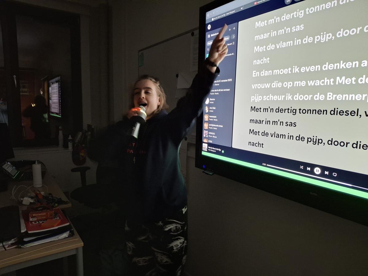 Naast de festiviteiten rondom Amerika, waren er ook twee jarigen aanwezig. Een leerling en een docent werden in het zonnetje gezet en toegezongen, al is in deze nachtelijke context ‘in het maantje gezet en toegezongen’ toepasselijker.