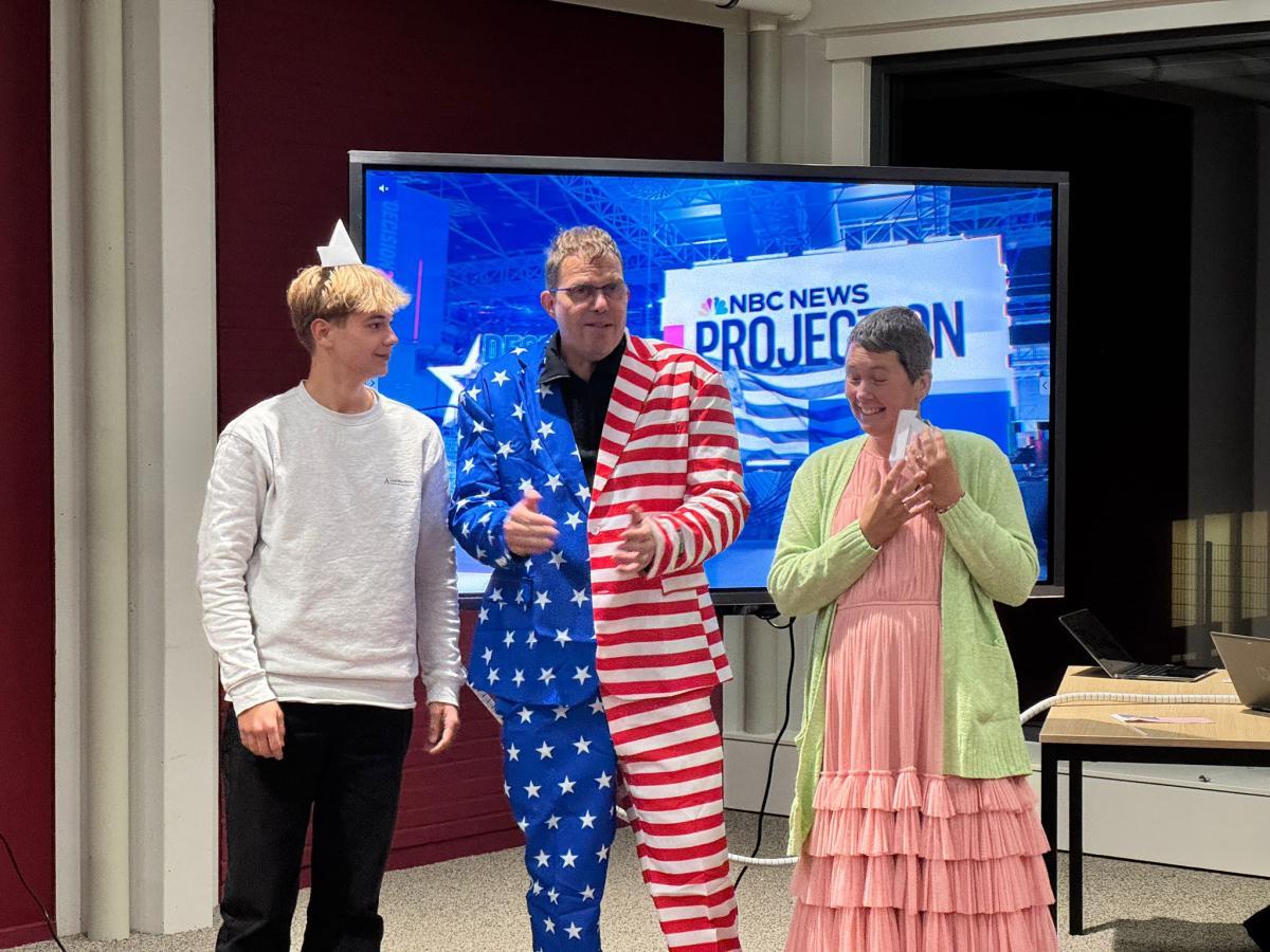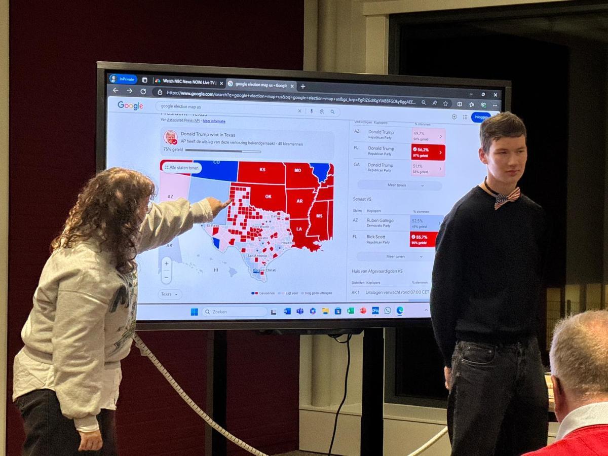 Het is woensdag 6 november, 3 uur in de nacht. Europa slaapt. Nederland slaapt. Veendam slaapt. Maar Amerika is wakker, het is het moment van de presidentsverkiezingen. Ook leerlingen van de Winkler Prins zijn wakker, vanaf 3 uur ’s nachts tot 7.45 kwamen zo’n 50 geïnteresseerde leerlingen en een groep docenten op school om samen de strijd tussen Trump en Harris te beleven tijdens de in het leven geroepen ‘verkiezingsnacht’, vol met Amerikaanse activiteiten.