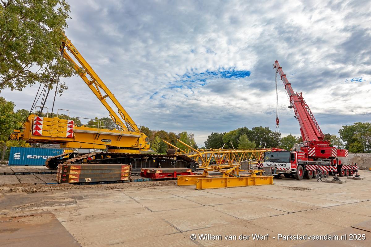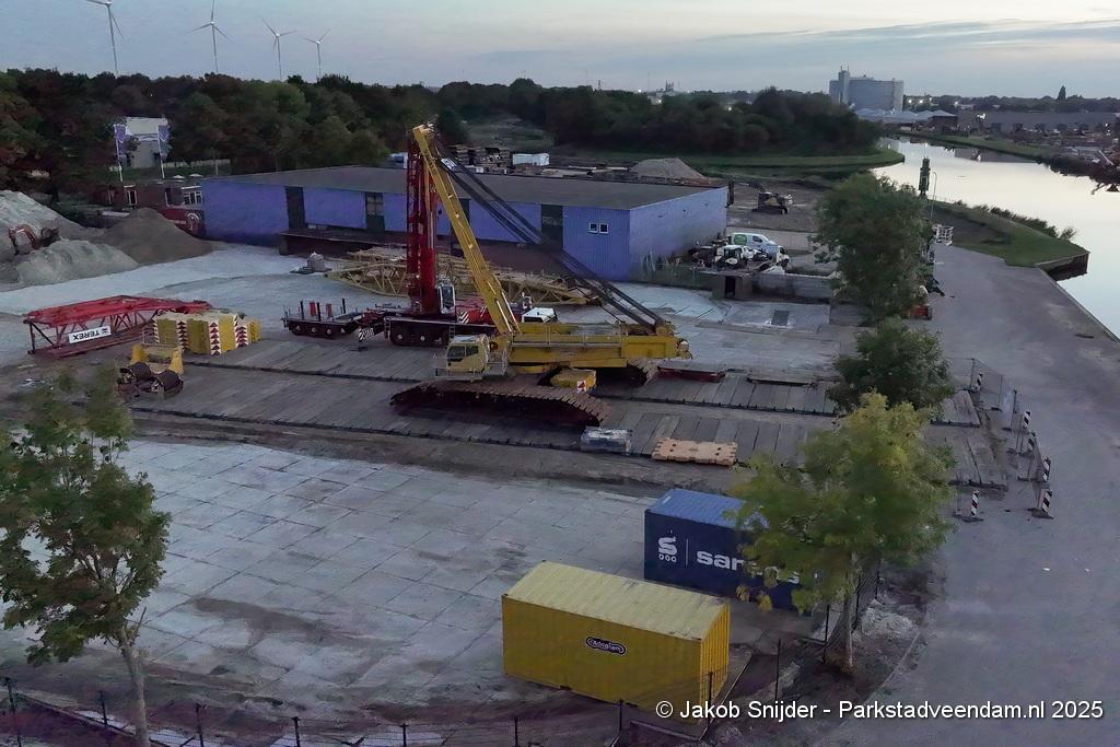 In Veendam is begonnen met de opbouw van een CC3800-kraan van Adrichem. Deze krachtpatser wordt ingezet om de eerste van zes mega-transformatoren van boord te hijsen en op een speciaal transport te plaatsen.