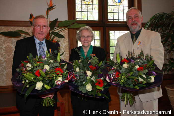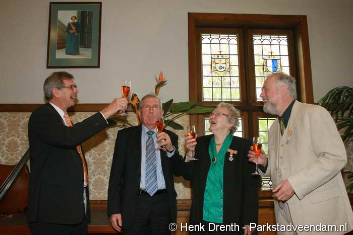 LINTJES - Ter gelegenheid van Koninginnedag werden vrijdag Koninklijke onderscheidingen uitgereikt. De heer Hidding, mevrouw Pot-Oudekerk en de heer Geijzendorffer werden tot "Lid in de Orde van Oranje Nassau" benoemd. Zij ontvingen hun Koninklijke Onderscheiding van burgemeester Ab Meijerman in de Raadzaal van het gemeentehuis van Veendam.