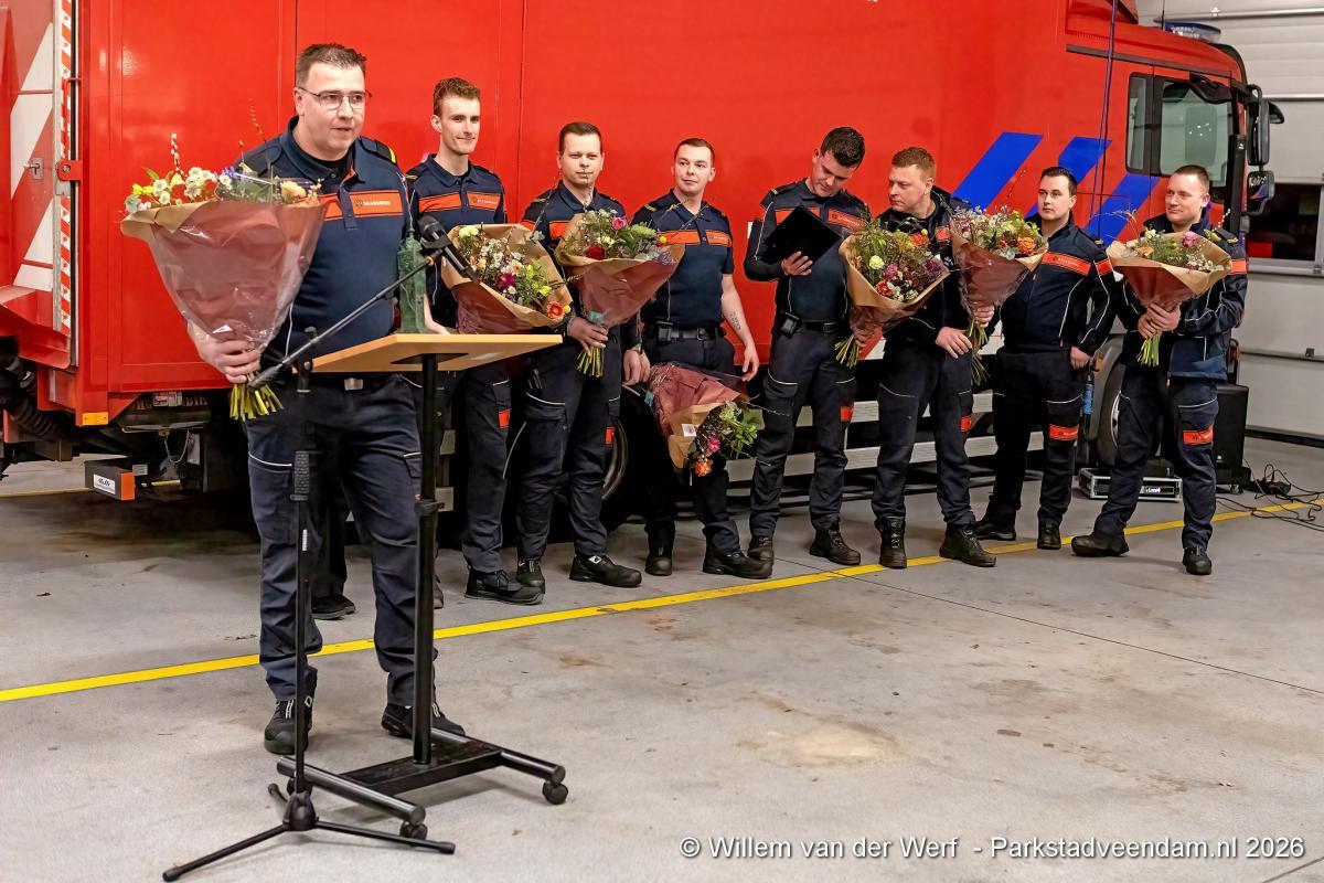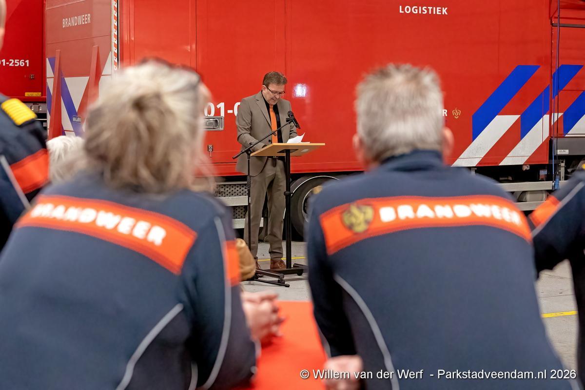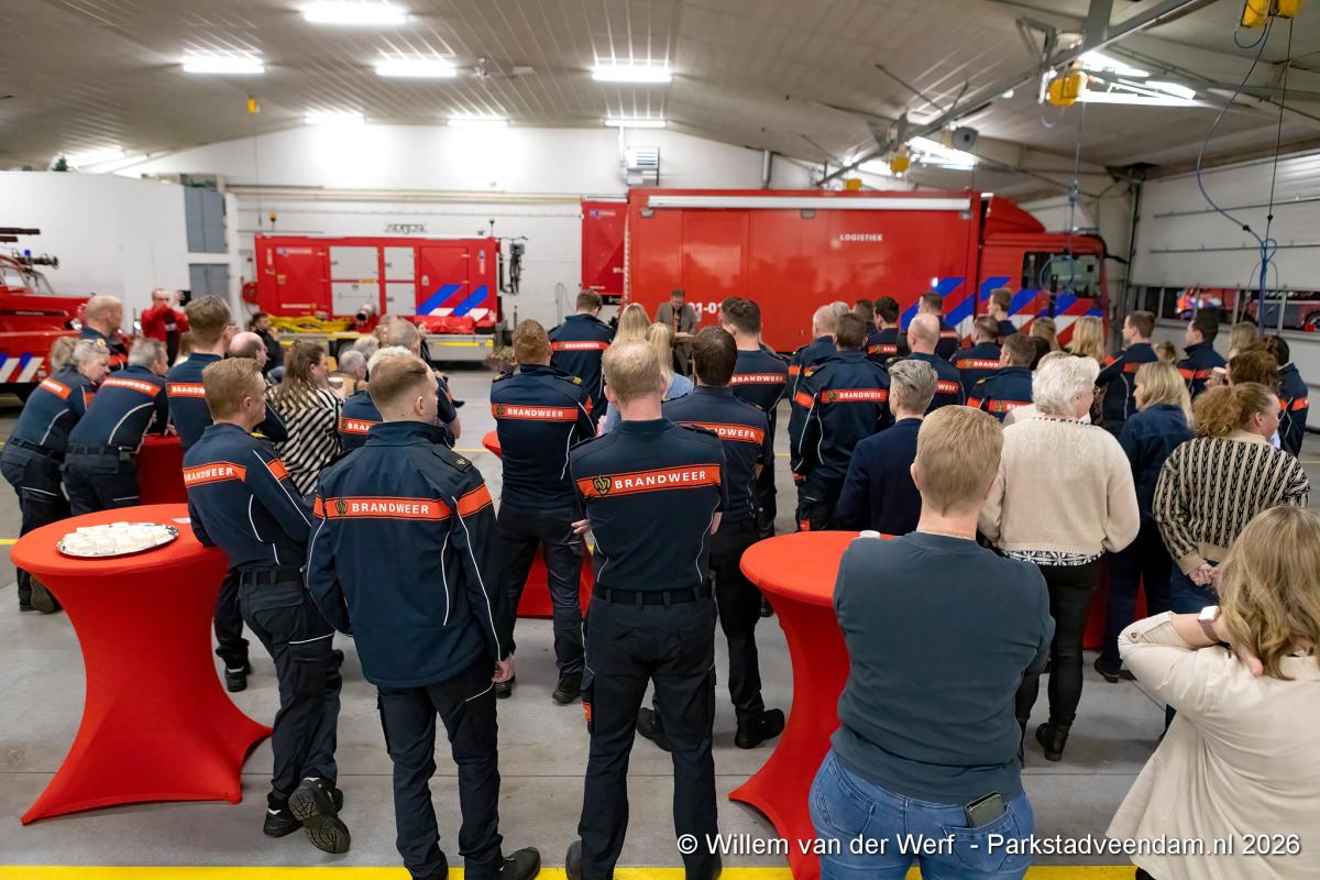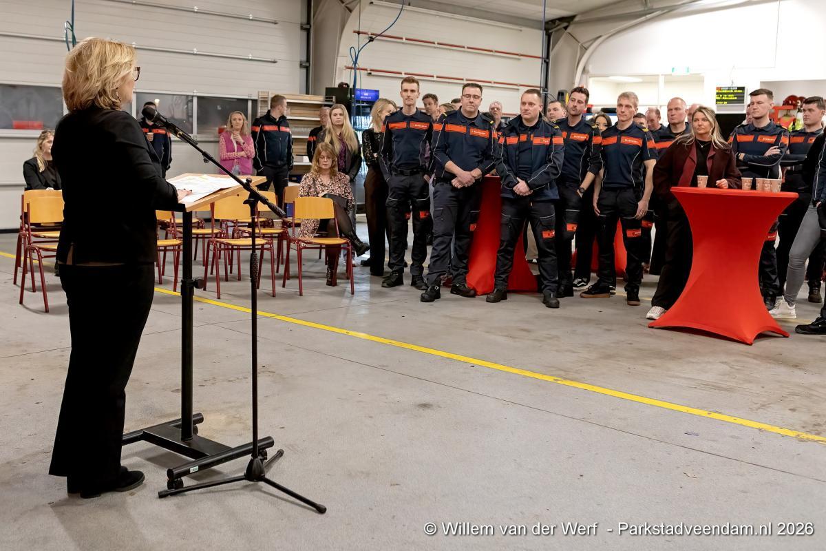 De vrijwilligers van het korps werden uitgebreid in het zonnetje gezet. De brandweer Veendam bestaat uit 34 vrijwilligers, verdeeld over twee ploegen. Onder hen bevindt zich één vrouwelijke brandweervrijwilliger. Burgemeester Pleyte gaf aan dat nieuwe vrijwilligers altijd welkom zijn en dat mensen die zich willen inzetten voor de gemeenschap zich kunnen melden bij het korps.