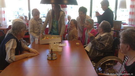 Mede door de goede organisatie van de activiteitencommissie, de hulp van vele hulpmoeders/vaders en sponsoren werd dit een onvergetelijke dag voor de kinderen. Aan het eind van de ochtend hebben een aantal leerlingen van de Viermaster, bewoners van het AG Wildervanckhuis getrakteerd op een eigen versierde cupcake en deze werd met veel enthousiasme ontvangen door de aanwezige dames.