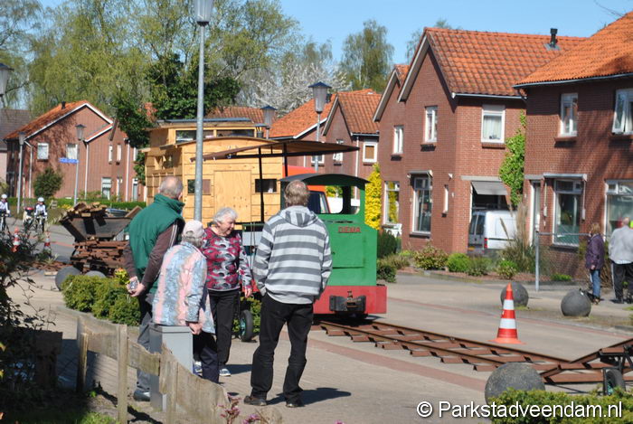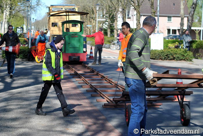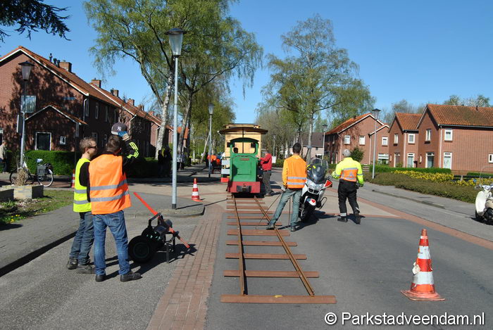 SPOOR BIJSTER - Iedereen dacht woensdagochtend even een moment dat er een nieuwe spoorverbinding tussen Veendam en Wildervank werd aangelegd aan de Woortmanslaan in Wildervank. Veel bekijks was er in ieder geval wel voor de PeerGroup die met de voorstelling Once upon a time in het Veen langs verschillende plaatsen (4 april t/m 8 juni) in Groningen en Drenthe trekt.