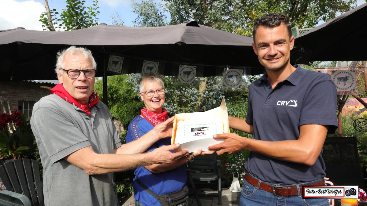 Dhr. Koen Brummel, veestapel adviseur van CRV, overhandigde het certificaat en het schildje en had een heerlijke taart meegenomen.