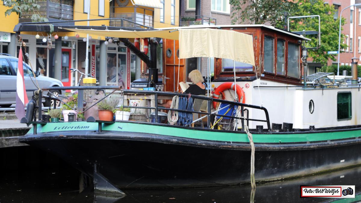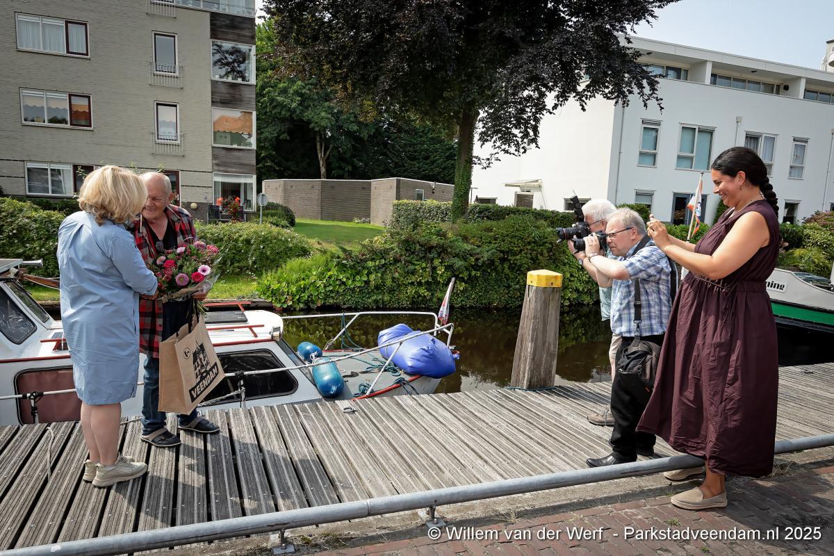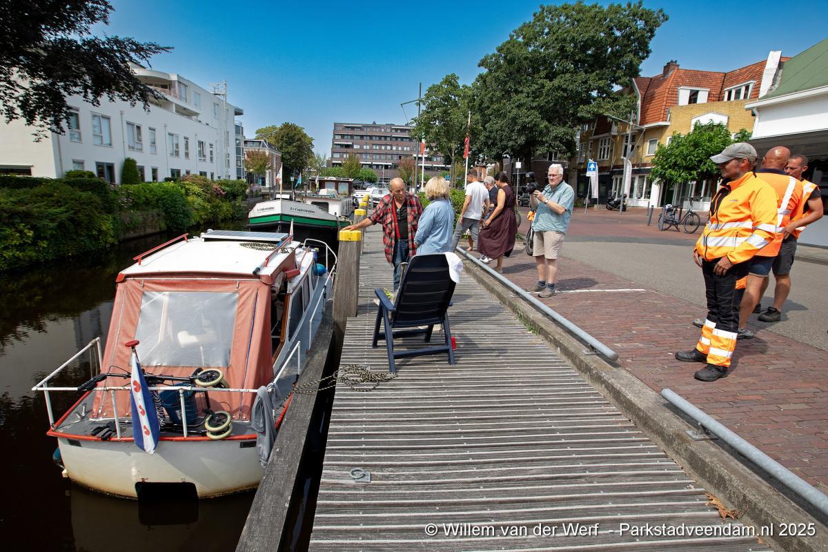 Het vaartuig wordt welkom geheten in de haven van Veendam, op de hoek Molenstreek/Blankensteinkade.