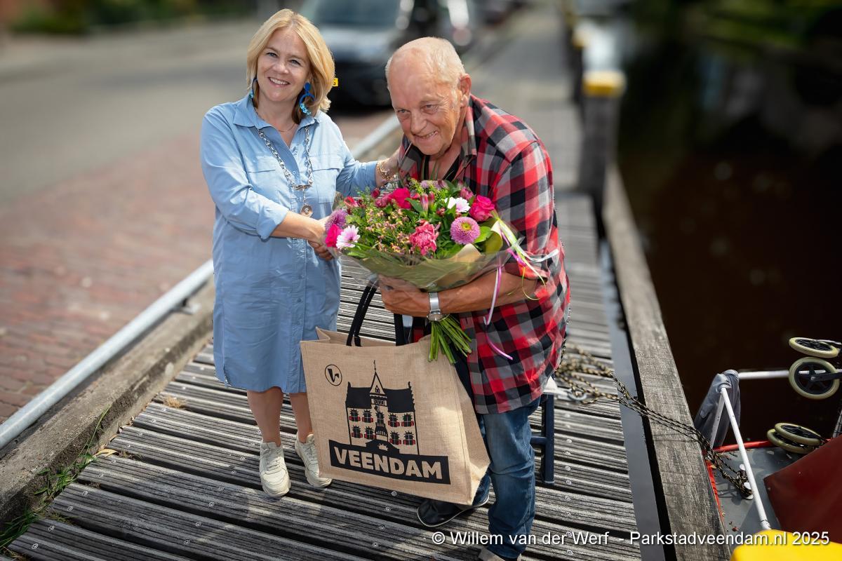 Donderdagmorgen voer het 500ste pleziervaartuig van 2025 Veendam binnen. Burgemeester Annelies Pleyte verwelkomde middags in de haven aan de Molenstreek om circa 14.00 uur het pleziervaartuig met een Veendam tas met uitgaantips en bloemen namens de gemeente Veendam.
