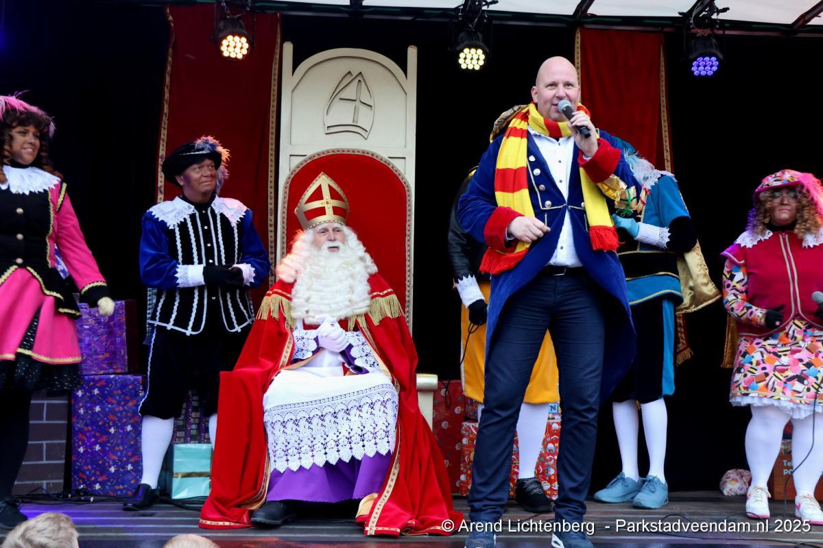 Ondanks de koude omstandigheden langs de route zorgden DJ Iris en het dweilorkest Wakker Worden uit Veendam voor een warme sfeer met muziek. Sinterklaas en zijn Hoofdpiet werden welkom geheten door burgemeester Annelies Pleyte.