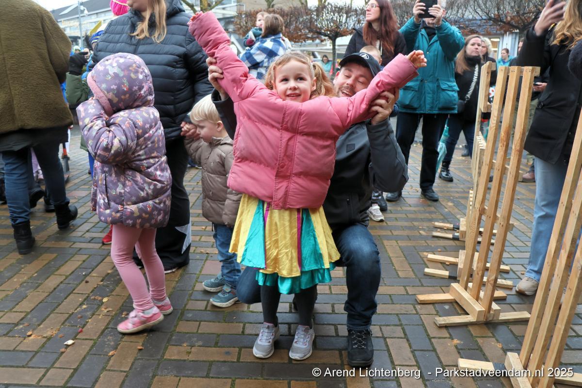 De Pieten waren aanwezig in het centrum om kinderen uit te nodigen. Even later stroomde het Veenlustplein vol, waarna het programma begon met een showopener. Mark en de centrummanager verzorgden de opening, waarna gezamenlijk het welkomstlied en diverse optredens volgden. Hoogtepunt was de aankomst van Sinterklaas met de paardentram, onder luid applaus en het lied Sinterklaas kom maar binnen met je Piet.