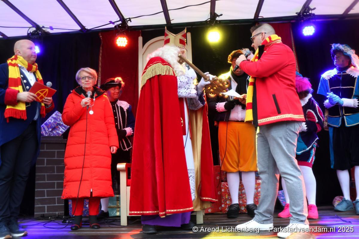 Een bijzonder moment was de sleuteloverhandiging: Sinterklaas gaf de symbolische sleutel van Veendam terug aan locoburgemeester Ans Grimbergen. Daarna nam de goedheiligman afscheid, waarna er nog gelegenheid was voor foto’s. Vervolgens vertrok Sinterklaas samen met zijn Pieten met de paardentram en werd het programma afgesloten met het uitzwaailied en Dag Sinterklaas.