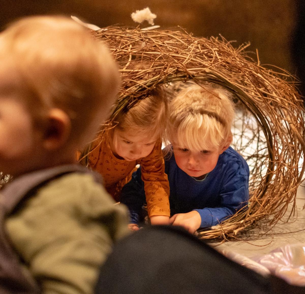 Naast de voorstellingen kunnen kinderen terecht in het Play Café, waar ze vrij kunnen spelen in de interactieve installatie Vlechtwerk van Profound Play. Deze zintuiglijke speelplek nodigt uit om te bouwen en te ontdekken, een plek waar fantasie en spel samenkomen.