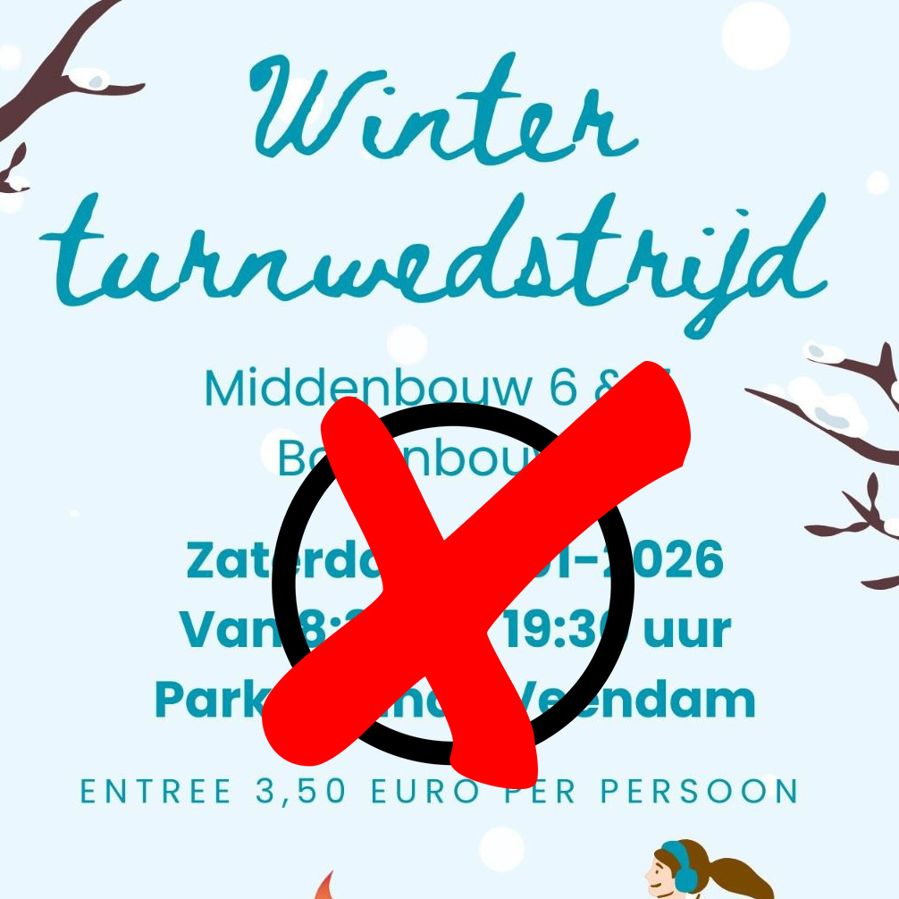 Maar vanwege de winterse weersomstandigheden heeft het bestuur, samen met de werkgroep Turnen Dames Groningen en de KNGU, de wedstrijden met pijn in het hart moeten afgelasten.