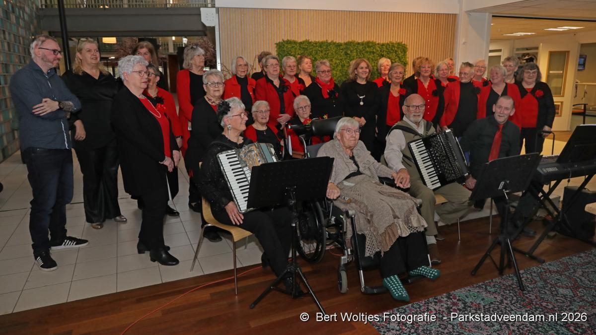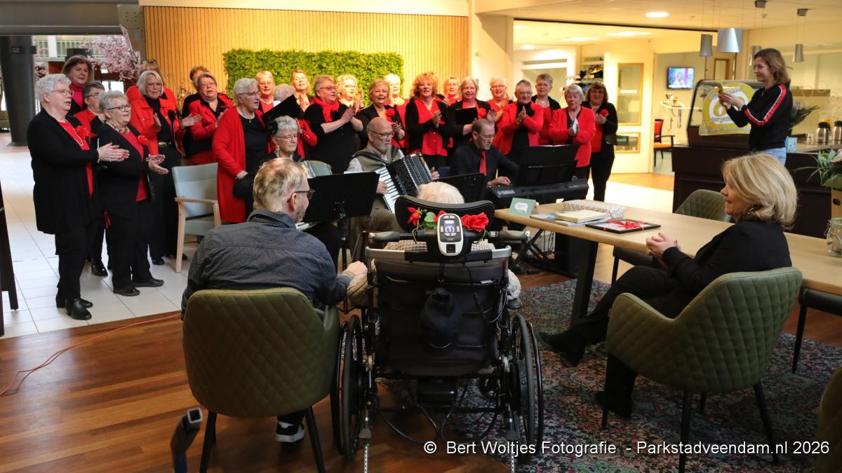 Het echtpaar is bovendien medeoprichter van vrouwenkoor De Vrolijke Noot. Als eerbetoon bracht het koor tijdens de viering een optreden met vier liederen. Natuurlijk werd ook het felicitatielied gezongen. Extra bijzonder was dat Marinus zelf accordeon speelt bij De Vrolijke Noot, waardoor het optreden een persoonlijk tintje kreeg.