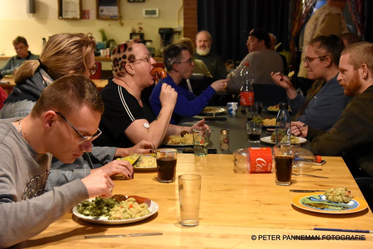 Daarna schuiven de bezoekers gezamenlijk aan voor een heerlijke maaltijd. Wat deze maaltijden extra bijzonder maakt, is dat ze samen met de bezoekers worden bereid. Dit versterkt het gemeenschapsgevoel en maakt van het koken een leuke en leerzame activiteit. Na het eten wordt er samen afgewassen, gevolgd door een kop koffie of thee. De avond wordt vaak afgesloten met een gezelschapsspel of een andere activiteit, afhankelijk van de wensen van de groep.