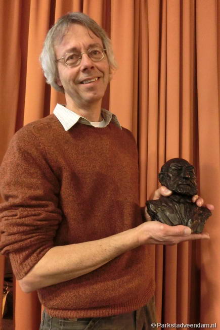 DICTEE - Adri Akkerman heeft vrijdagavond (5 april) in Veendam het 20-ste en laatste Winkler Prins Dictee der Nederlandse taal gewonnen. Met 8 taalfouten was hij met afstand de beste deelnemer. Daarmee sleepte Adri voor de tweede maal het bronzen borstbeeld van Anthony Winkler Prins in de wacht. Achttien jaar geleden was ook al eens winnaar van deze spellingwedstrijd, georganiseerd door de Lions Club Veendam.