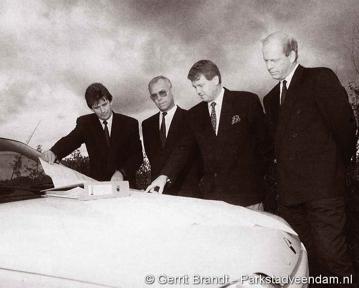 De plek waar nu hole 4 is gesitueerd deed in de jaren 80 dienst als rugbyveld. Dit veld vormde in 1988 de voorlopige driving range van de club. Een schaftkeet van de Grontmij, het bedrijf dat de directie voerde over de aanleg van de baan, fungeerde als clubhuis. Toenmalige wethouder van Sportzaken Anne Oldenburg (tweede van links op de foto) van stichtingsbestuurder Karst de Jonge op locatie uitleg over de aanleg van de baan.
