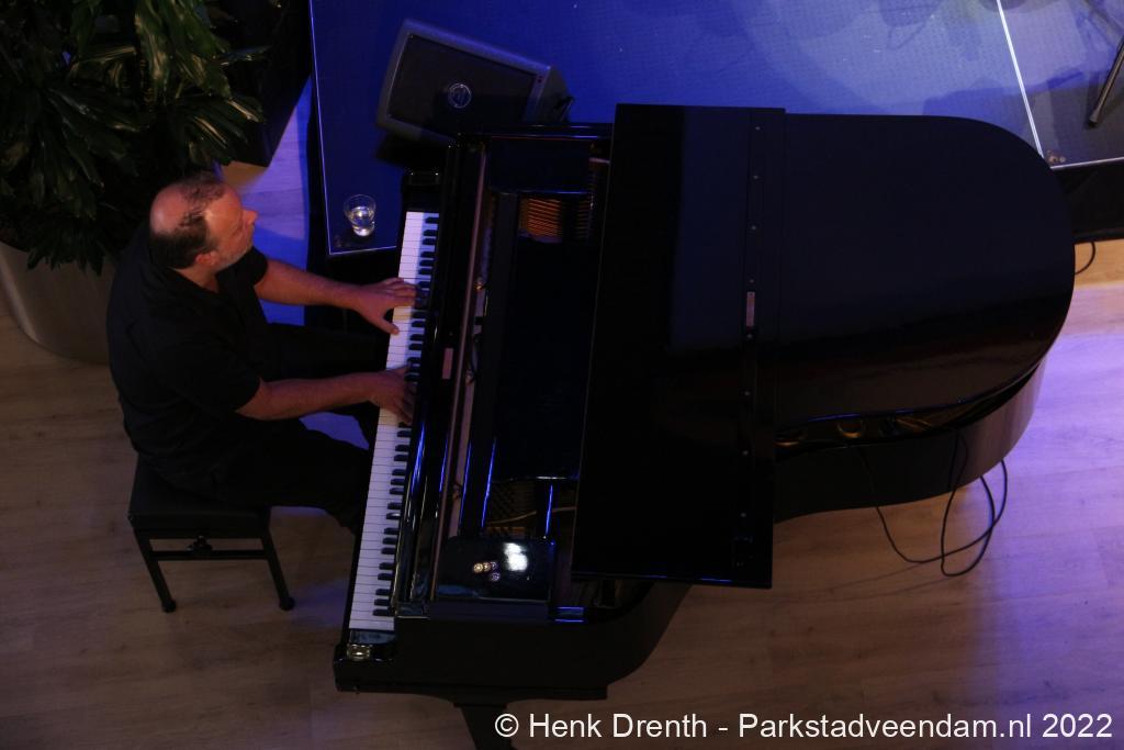 Deze avond begeleidt hij Laurens Schreuder met liedjes in het Gronings.