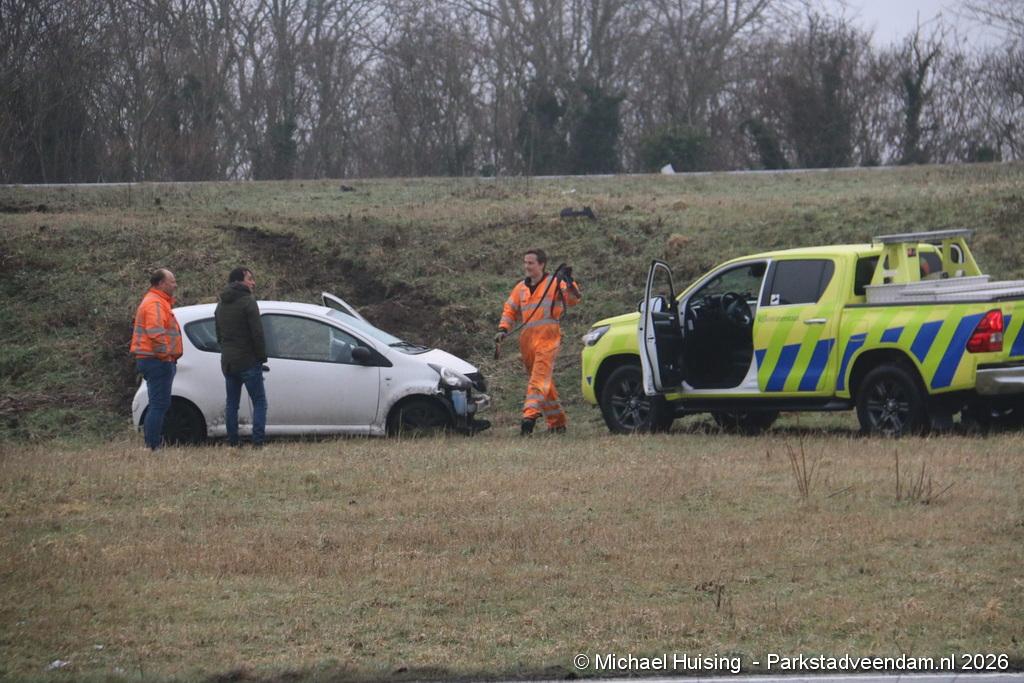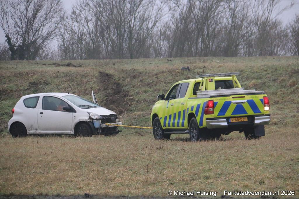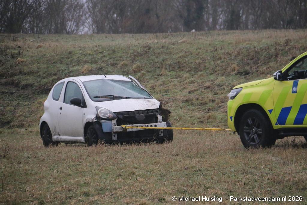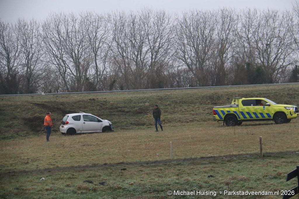 Zaterdagmiddag is een auto vanaf de N33 bij Meeden onderaan het talud terechtgekomen, ter hoogte van de toerit bij Veendam-Noord. De bestuurder bleef ongedeerd, maar het voertuig raakte zwaar beschadigd.