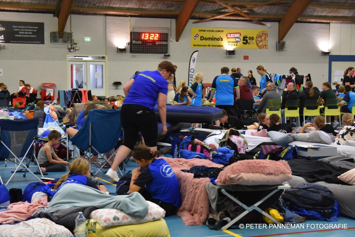 Het was dit jaar passen en meten maar het is gelukt: alle deelnemers en hun begeleiders, in totaal ongeveer 550 personen, hebben het hele weekend gebivakkeerd en geslapen in de Sorghvliethal! De lijnen waren strak uitgezet en dankzij de betrokkenheid van alle deelnemers bleven de vele luchtbedden, klaptafels en tuinstoelen keurig in de vakken.