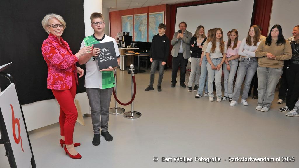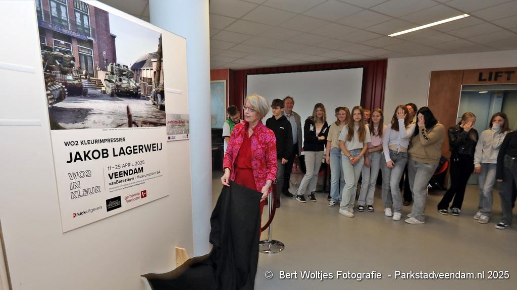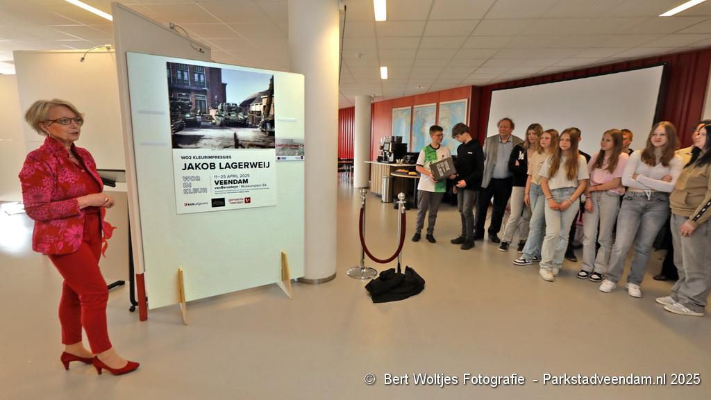 De expositie is gebaseerd op het werk van Jakob Lagerweij uit Wilp, een van de beste colouristen ter wereld. Hij heeft meer dan duizend foto’s uit de jaren ’40-’45 zorgvuldig ingekleurd om de geschiedenis een extra dimensie te geven. Zijn waarheidsgetrouwe bewerkingen trokken zowel nationaal als internationaal de aandacht en vormden de basis voor de vierdelige boekenreeks WO2 in kleur. Deze boekenreeks werd vrijdag aan 2 Veendammer scholen uitgereikt.