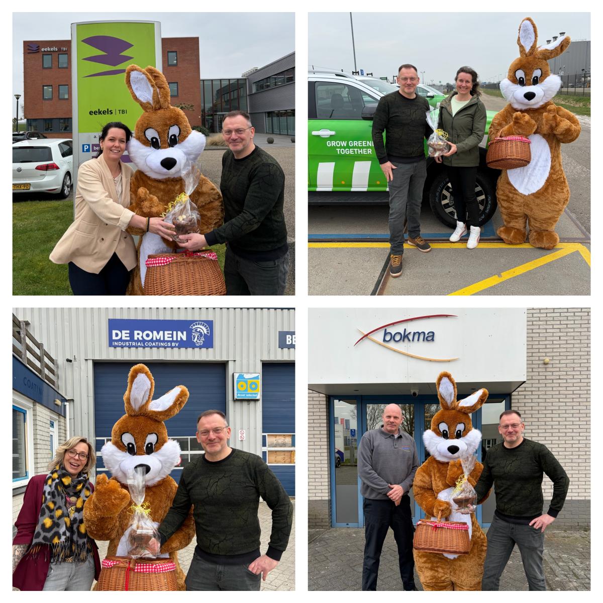 De paashaas, Gerrit en Marianne brachten een bezoek aan de volgende partners: Bokma Klimaat BV, De Romein Industrial Coatings BV, gemeente Veendam, Round Table 47, Nobian, Energystock, Eekels TBI, Kiwanis Veendam, Rabobank SMG en Magnesium Kuurstad Veendam.