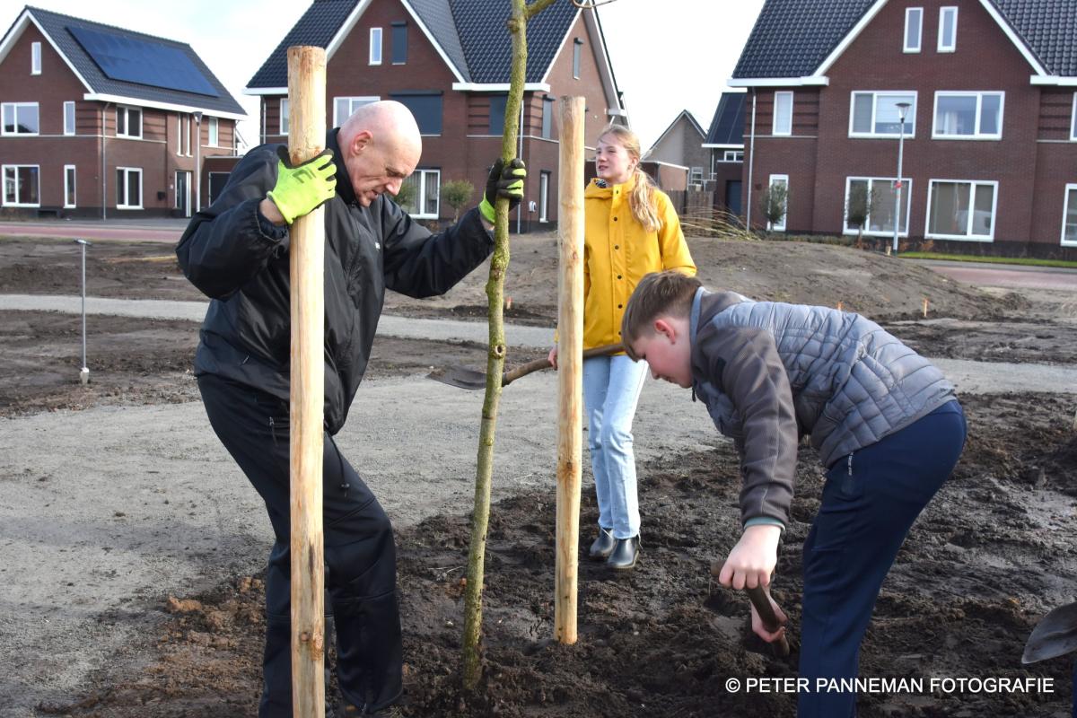 Wethouder Bert Wierenga was aanwezig om mee te helpen bij het planten van de bomen. Voor Wierenga was dit zijn laatste officiële handeling in functie.