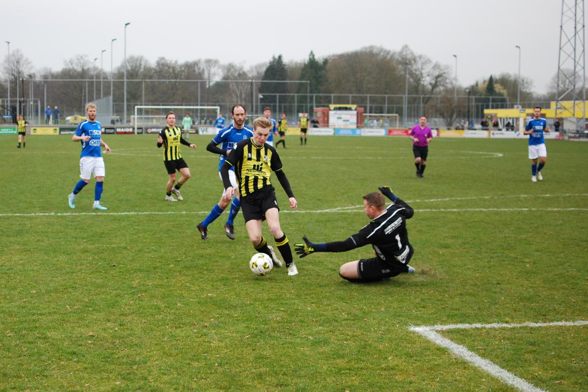 Lorenzo: ‘Mijn eigen spel? Ja, daar ben ik op zich wel tevreden mee. Voldoende. Ik kan meer maar voor dit moment is het voldoende. Ik maak stappen en daar ben ik blij mee. Hoop voor langere tijd nu fit te blijven. Hoewel we in de tweede helft minder waren, kregen we nog genoeg kansen. We hadden het kunnen beslissen. Dan zie je dat we nu in de hoek zitten waar de klappen vallen. De laatste weken zit het niet mee. Ja, vorige week tegen TKB verloren we ook in de blessuretijd. Helaas pakken we vandaag ook geen drie punten. Dan moeten we het volgende week thuis tegen VVG maar recht trekken. Klopt, we hebben uit de laatste vier wedstrijden maar twee punten gehaald. Er moet wel iets veranderen willen we die derde plek in de competitie halen. De eerste helft vandaag van ons was veelbelovend. Het probleem is dan dat je máár met 1-0 voor staat. Nee, dit is absoluut zonde.’