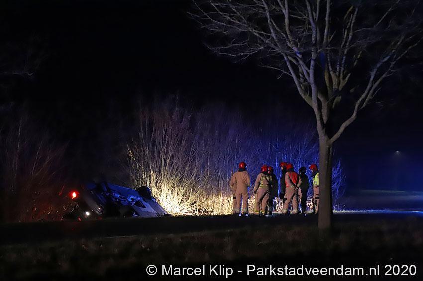Een 75-jarige vrouw uit Veendam is donderdagavond overleden bij een ongeluk op de Energieweg in Foxhol. Het slachtoffer reed in een bocht rechtdoor en botste achterop graafmachine die in de berm geparkeerd stond.