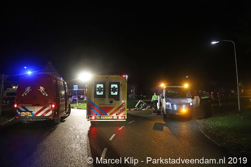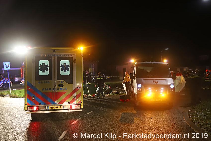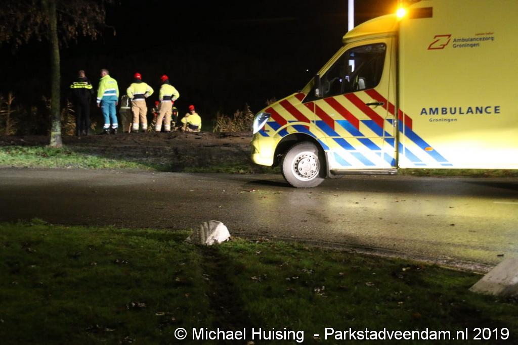 Naar verluidt kon de bestuurder niet meer tijdig remmen doordat een bestuurder uit tegengestelde richting ook door de wegversmalling reed. De doorgaande weg was ten tijde van de hulpverlening en berging (Fruitema Oude Pekela) van het voertuig afgesloten.