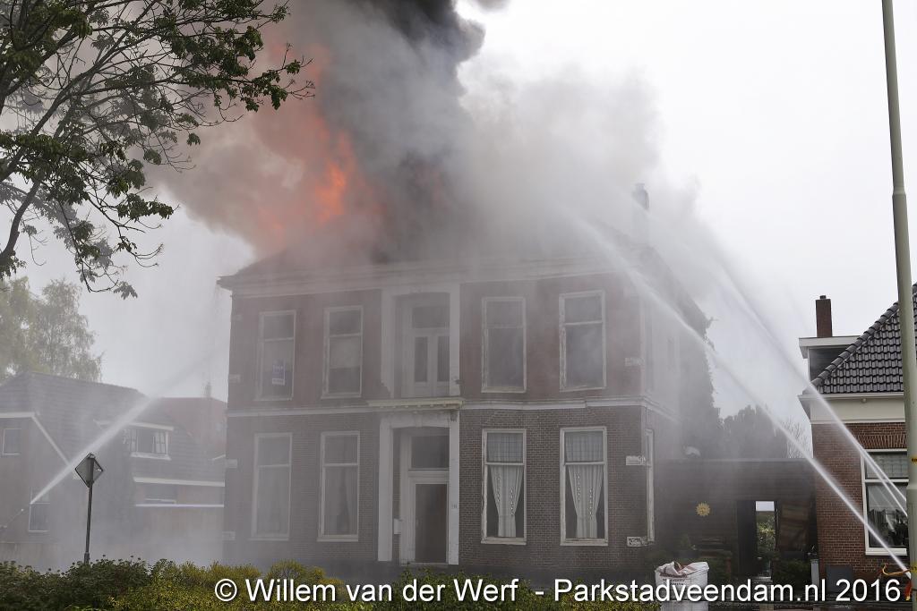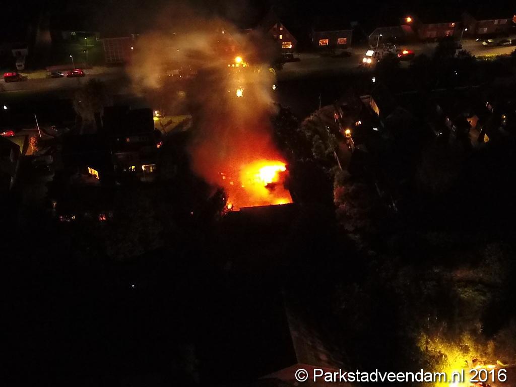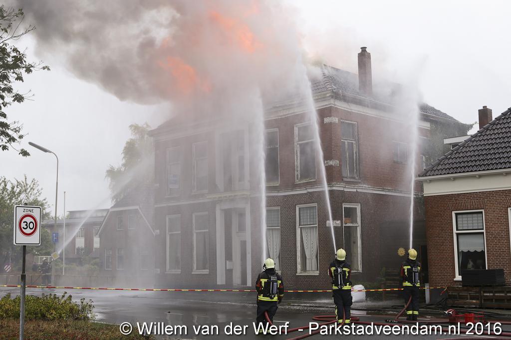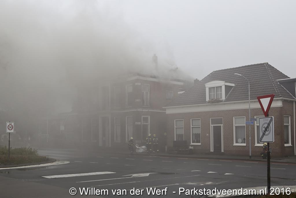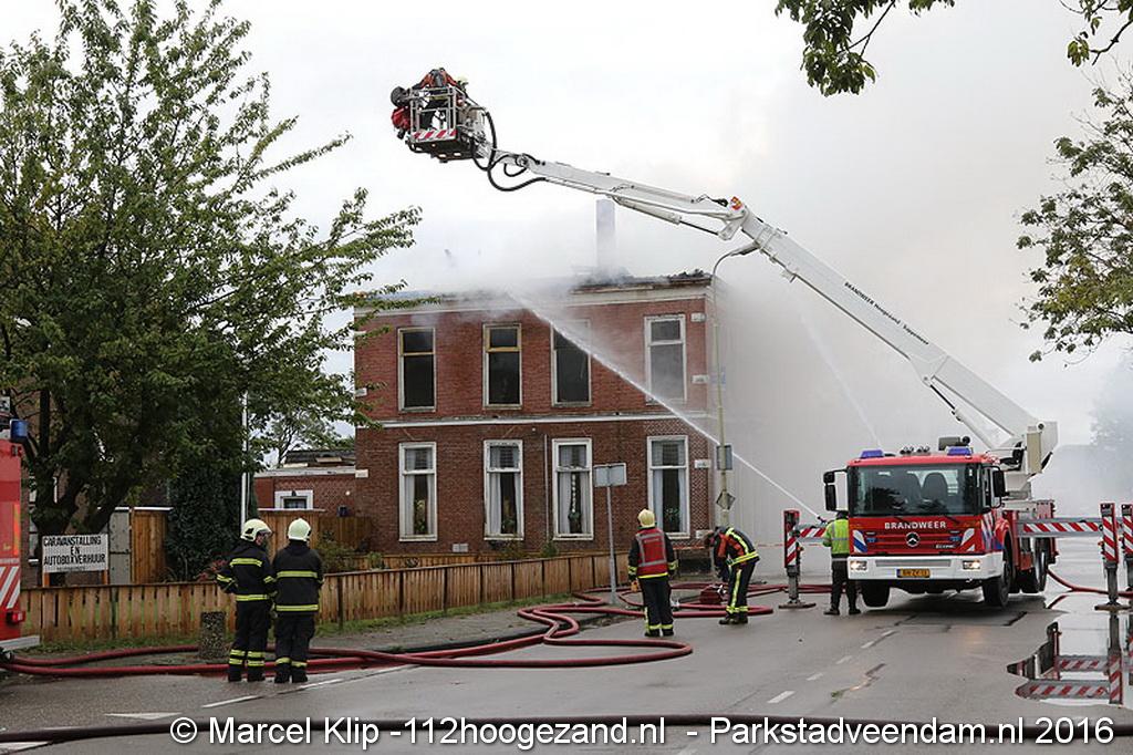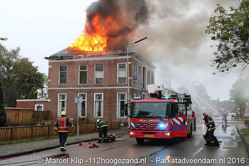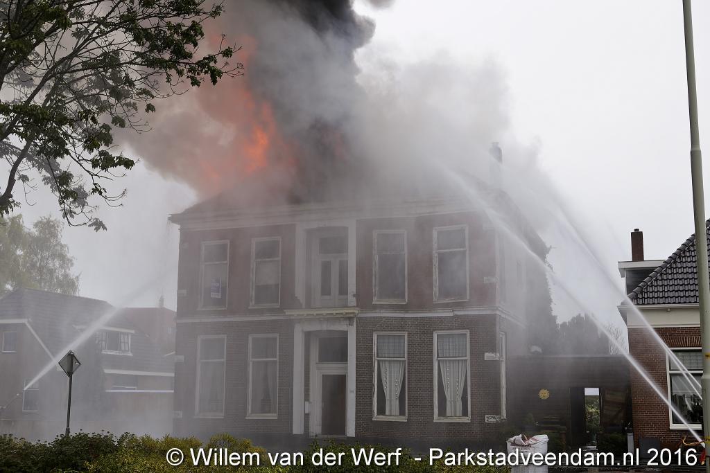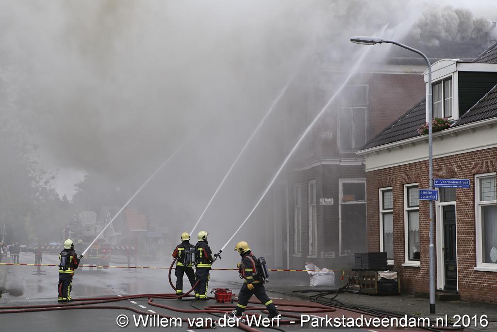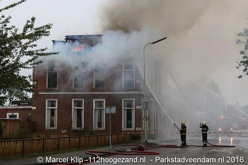 De bewoners van het pand konden op tijd wegkomen. De Veendammer brandweer is met meerdere voertuigen aanwezig. De brand wordt alleen vanaf de zijkant geblust omdat de gevel instabiel is.