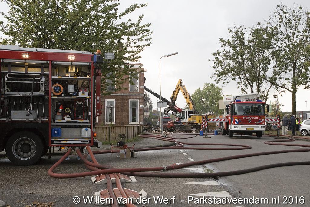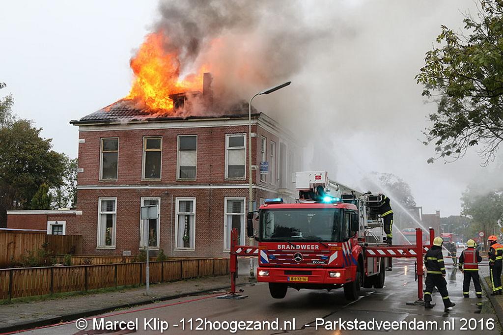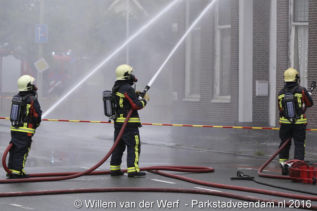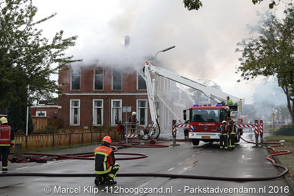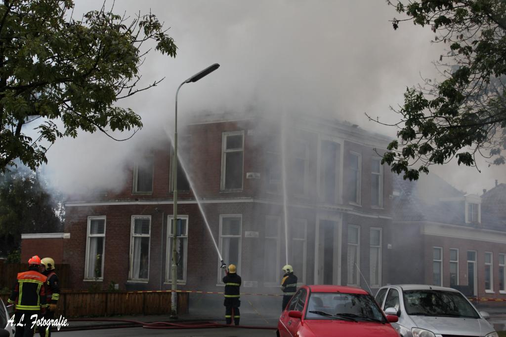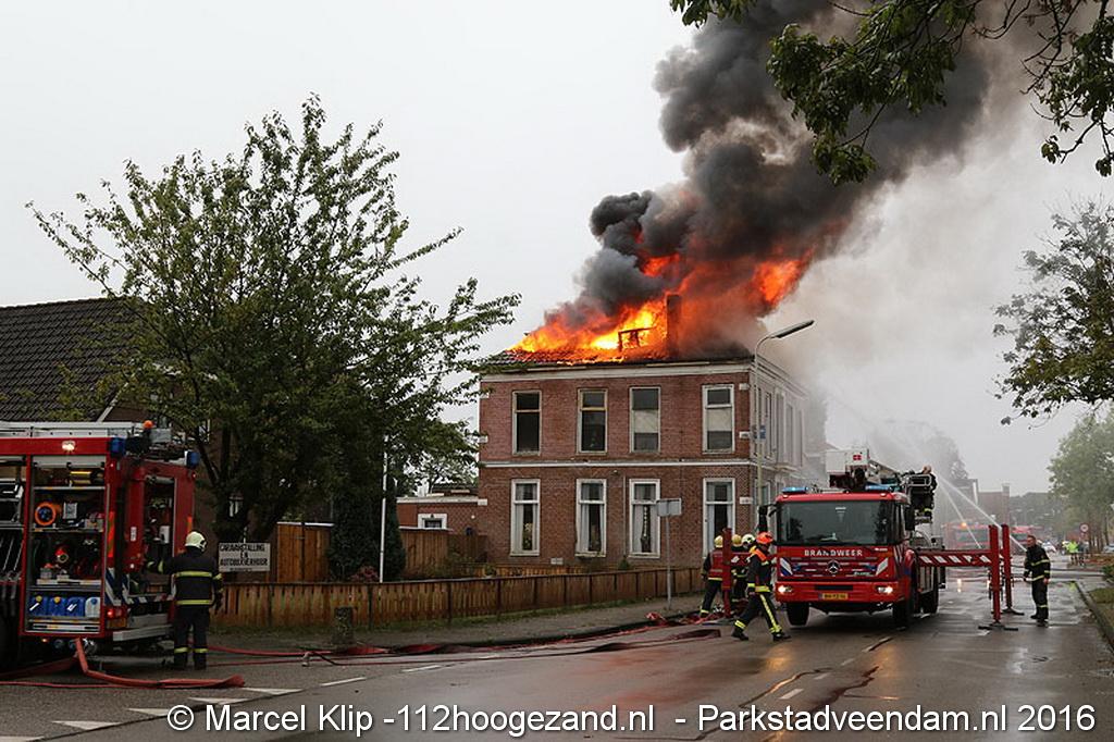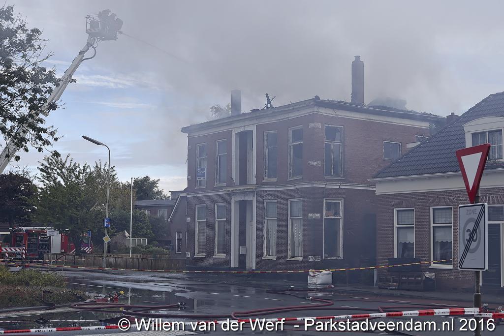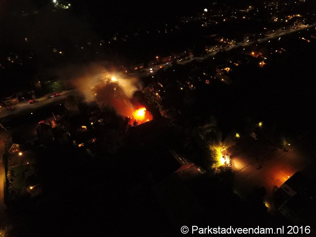 De bewoners van het pand konden op tijd wegkomen. De Veendammer brandweer is met meerdere voertuigen aanwezig. De brand wordt alleen vanaf de zijkant geblust omdat de gevel instabiel is.