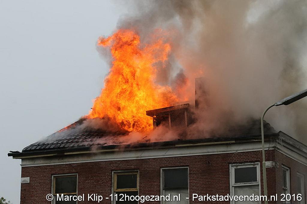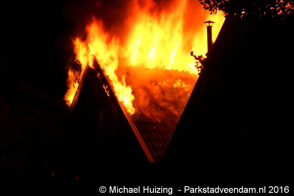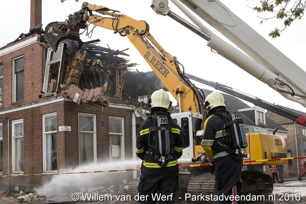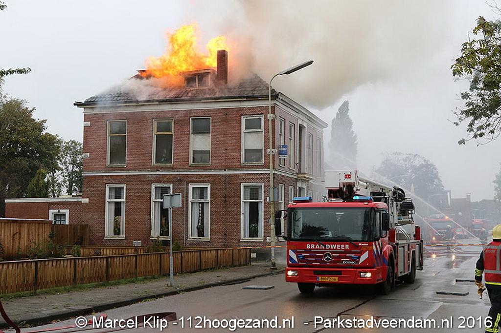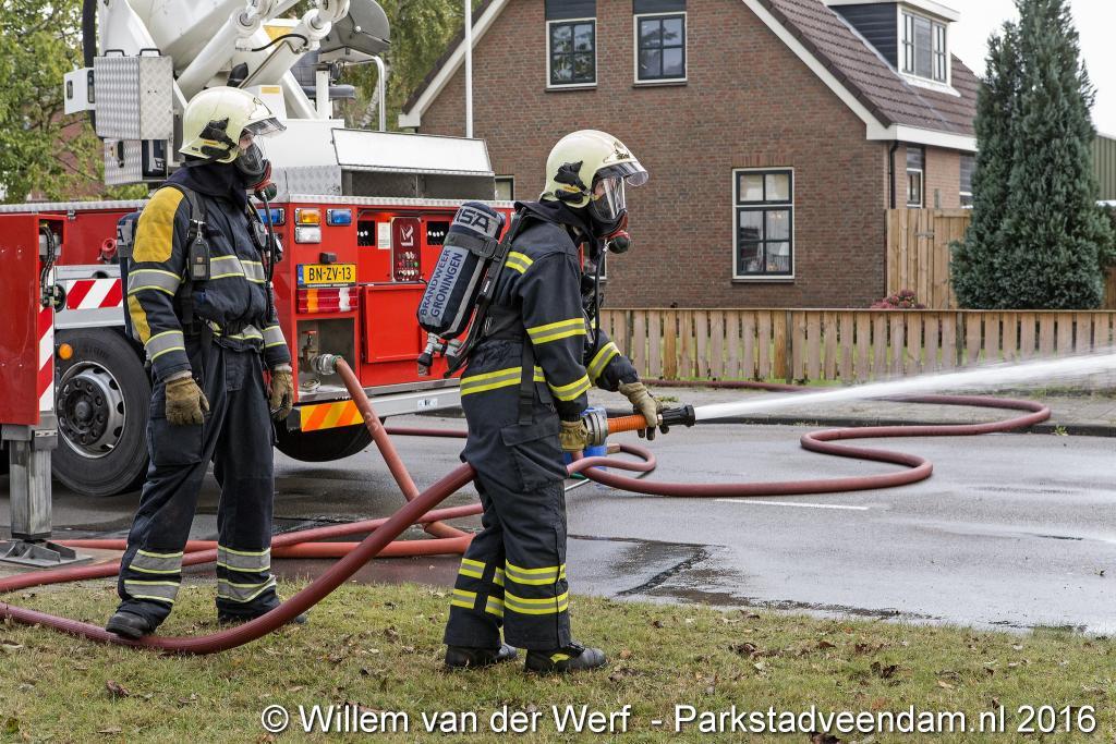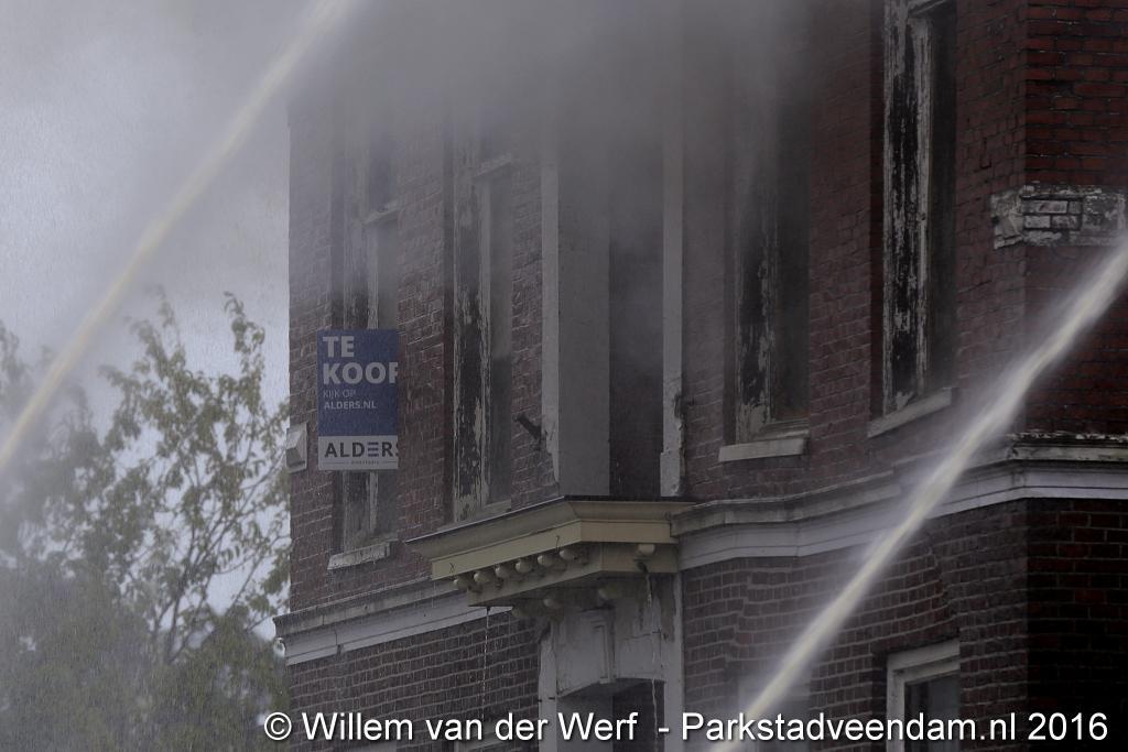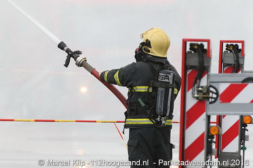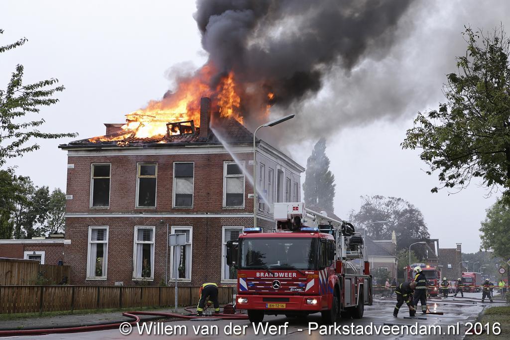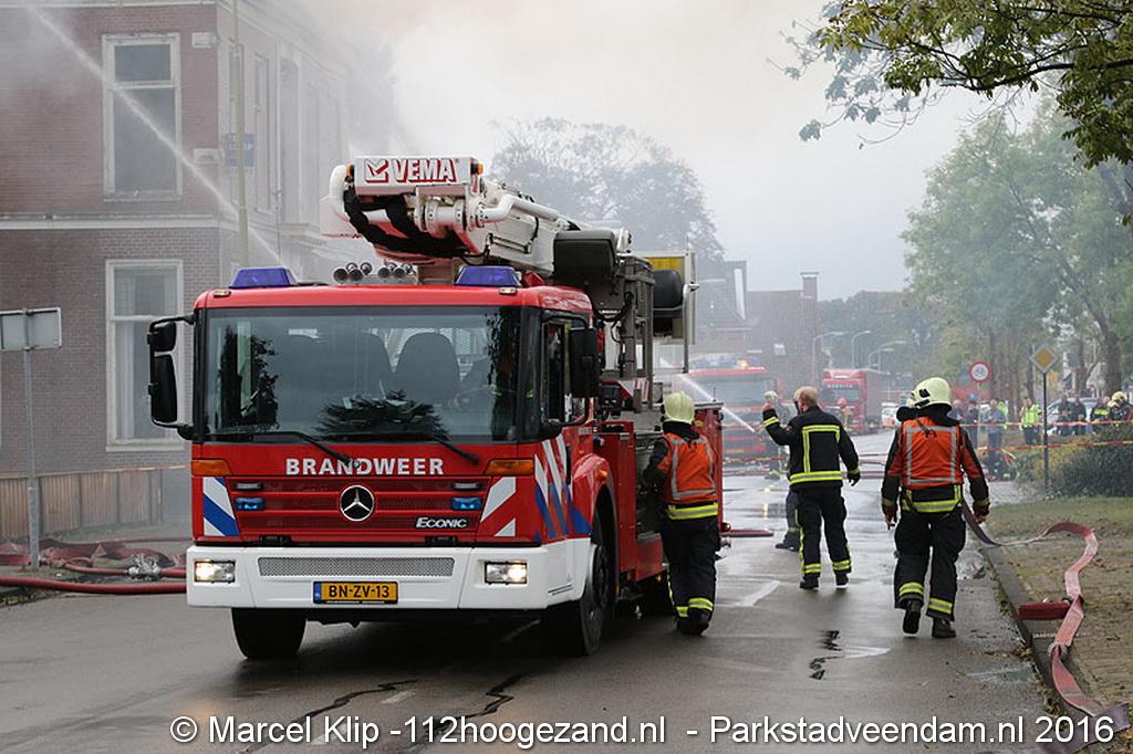 De bewoners van het pand konden op tijd wegkomen. De Veendammer brandweer is met meerdere voertuigen aanwezig. De brand wordt alleen vanaf de zijkant geblust omdat de gevel instabiel is.