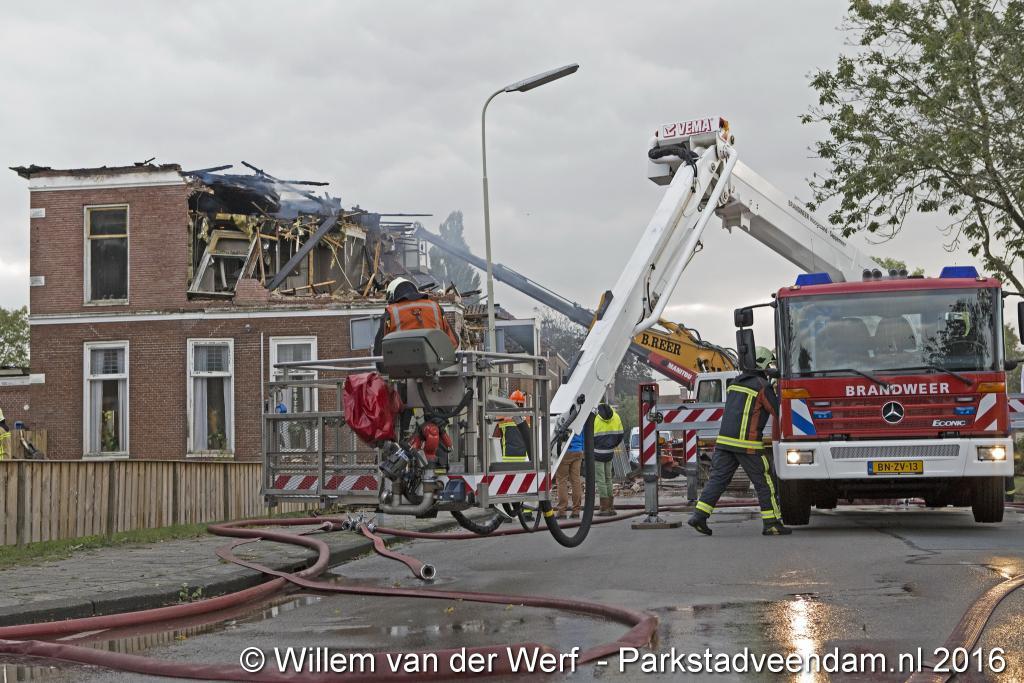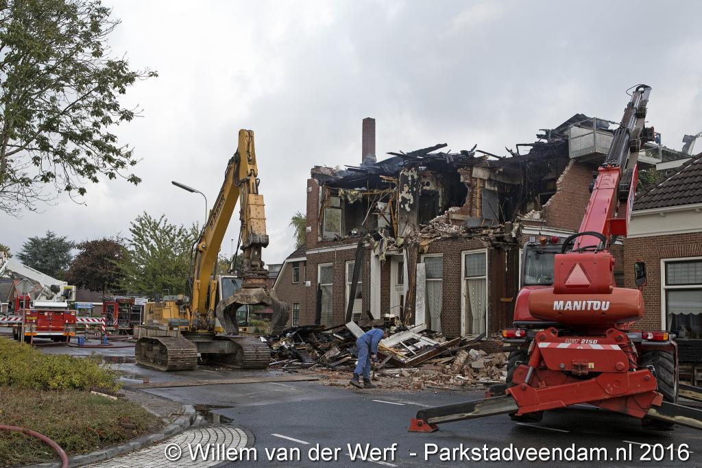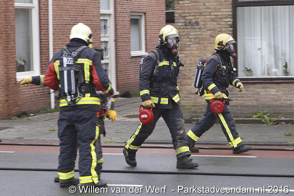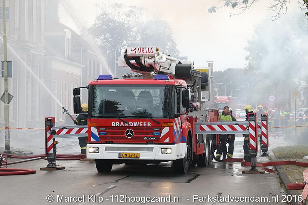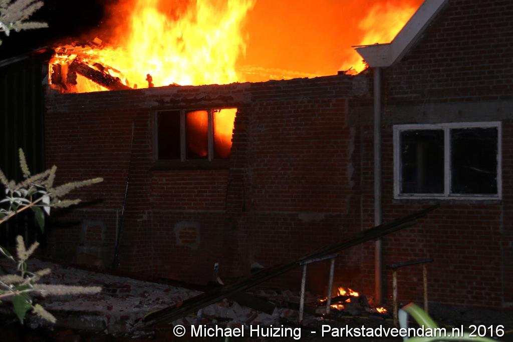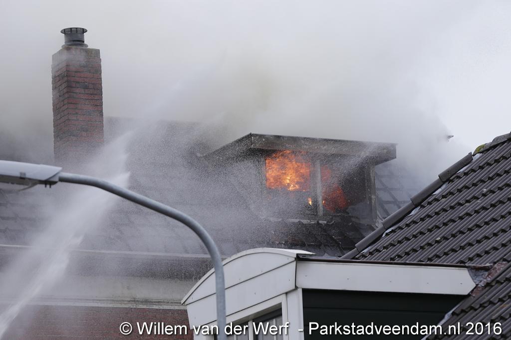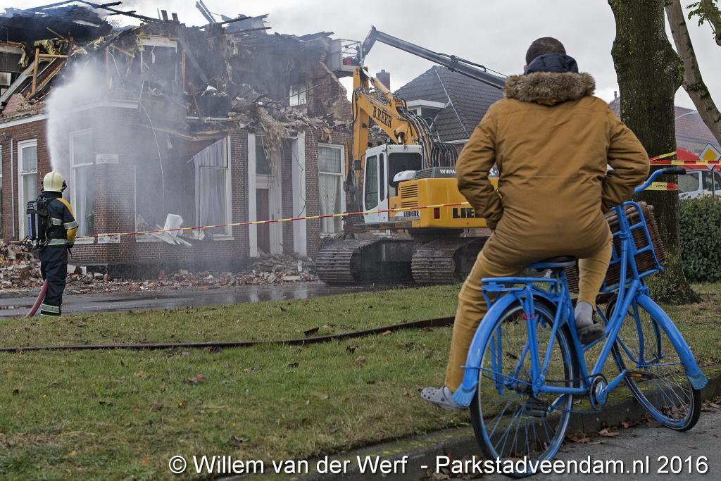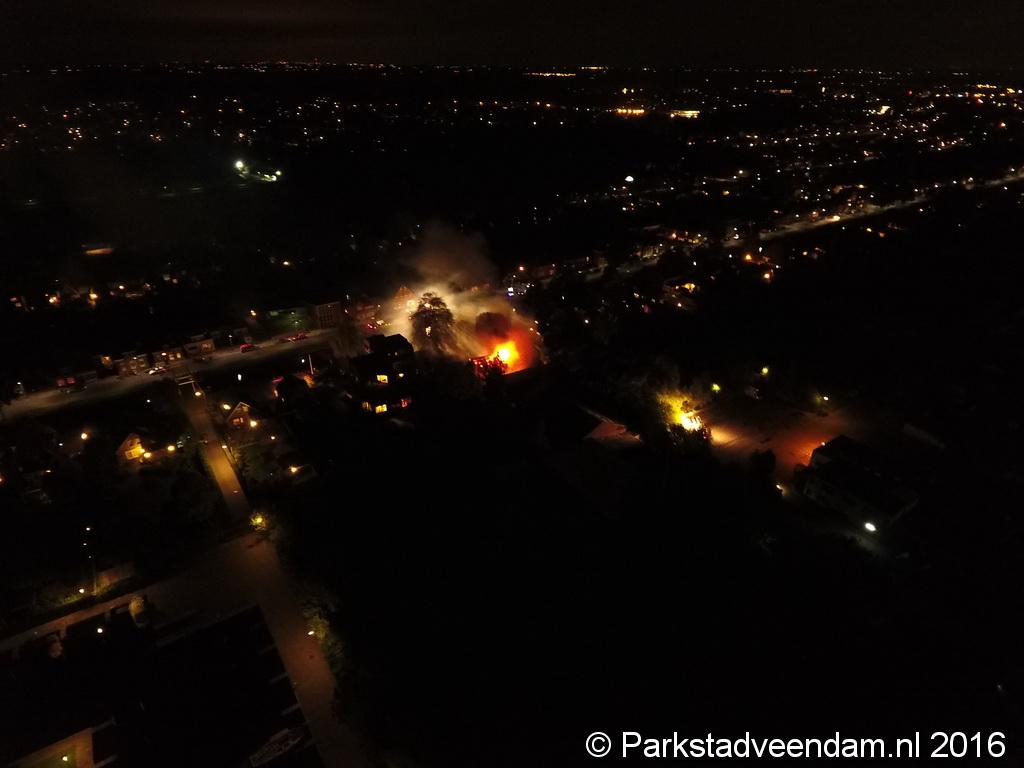 De bewoners van het pand konden op tijd wegkomen. De Veendammer brandweer is met meerdere voertuigen aanwezig. De brand wordt alleen vanaf de zijkant geblust omdat de gevel instabiel is.