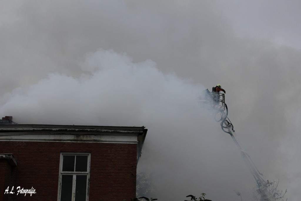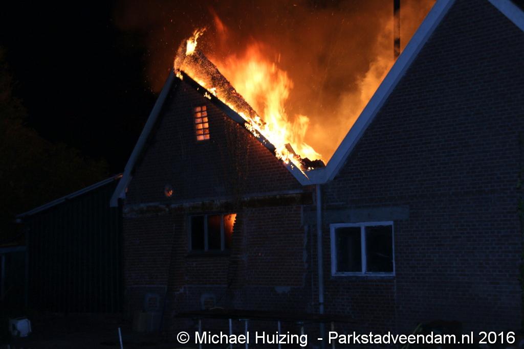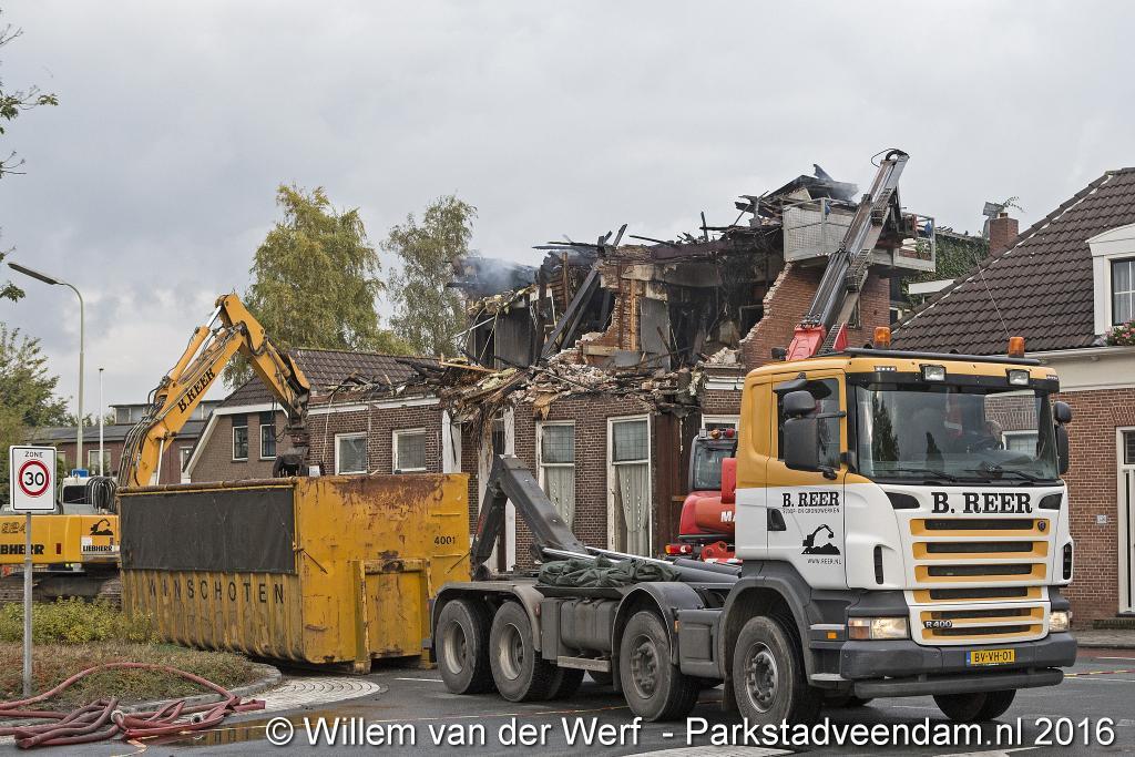 De brand is uit, op dit moment wordt er nageblust en wordt het puin uit elkaar getrokken, de Brandweer is langzaam begonnen met opruimen van de slangen. De weg is op dit moment nog afgesloten voor het verkeer.