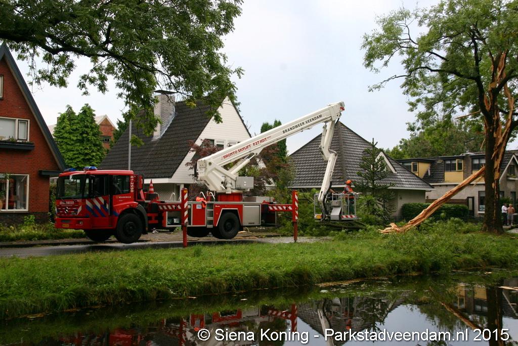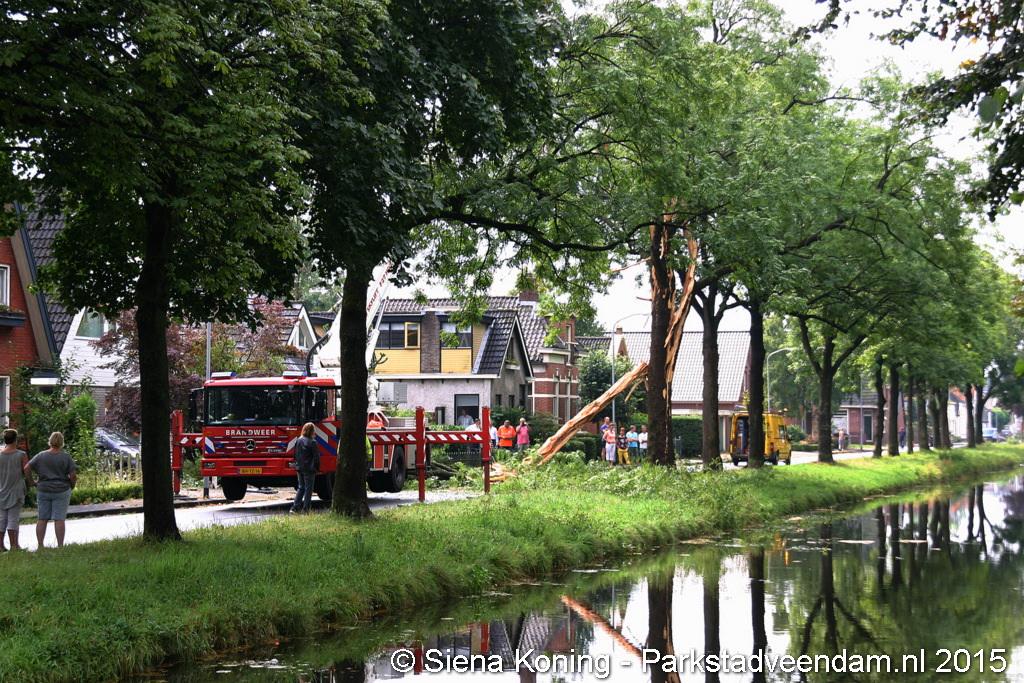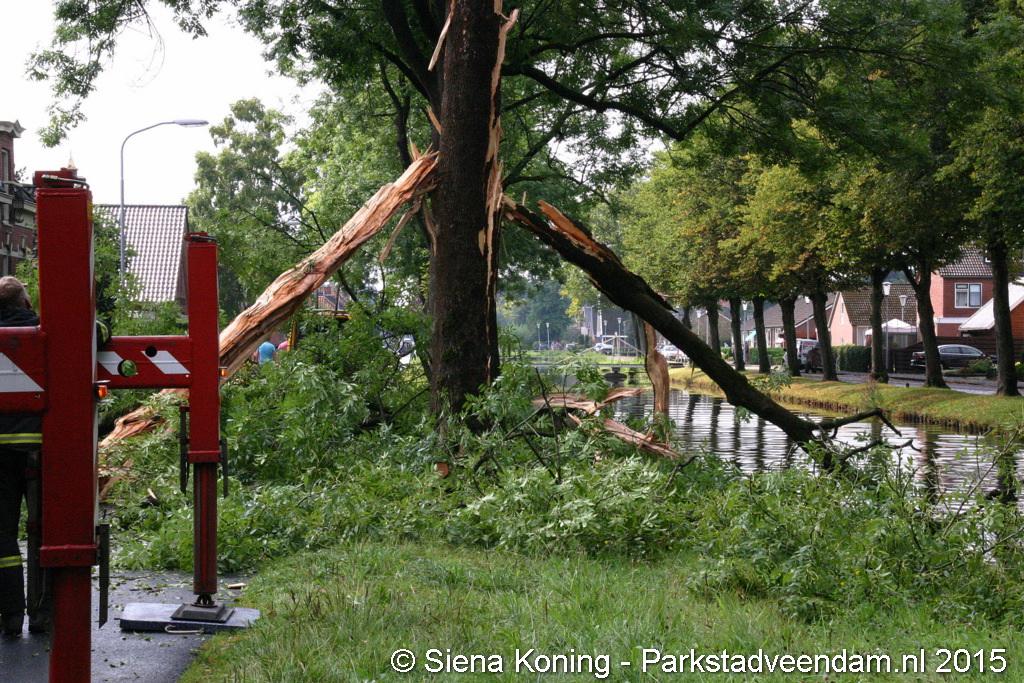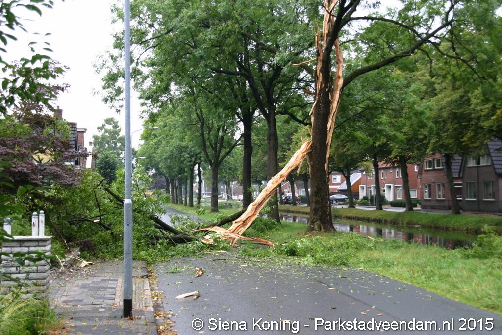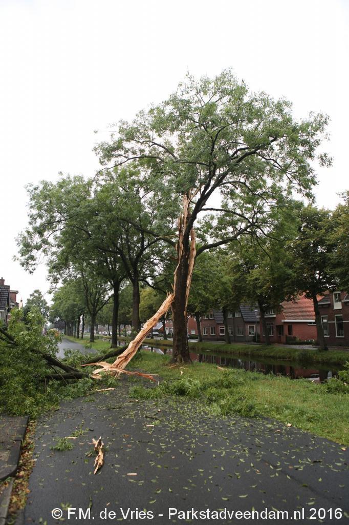 De boom is hierbij helemaal uiteen gereten en dikke takken lagen over de weg. Dat zo'n boom splijt komt omdat bij de inslag de sappen in de boom verdampen en niet weg kunnen, de druk zorgt er dan voor dat boom scheurt en uit elkaar spat.