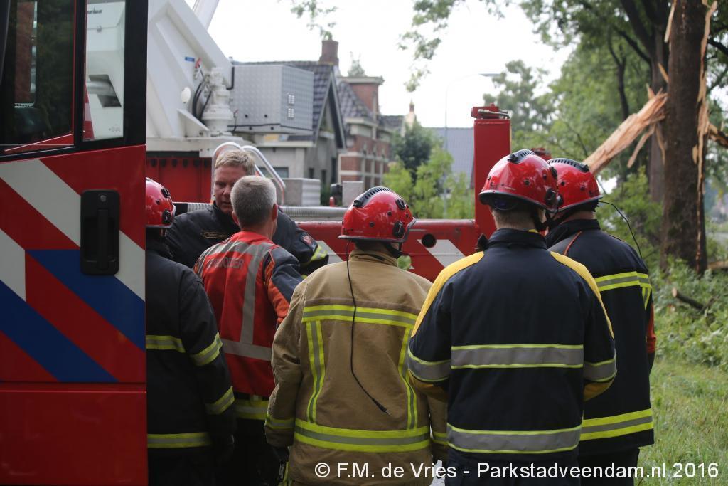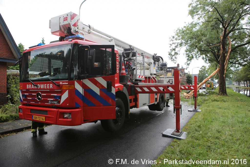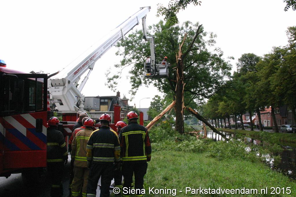 VAN DELFTSTRAAT - Zondagochtend is tijdens een onweersbui de bliksem ingeslagen in een boom aan de Van Delftstraat in Wildervank.