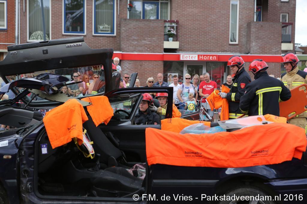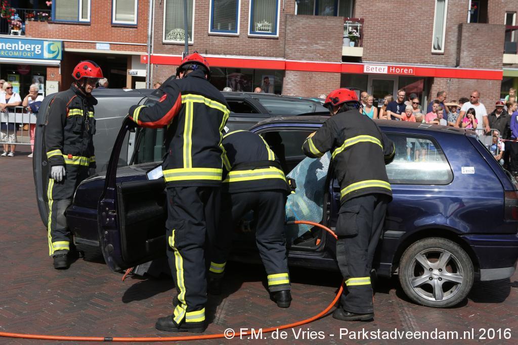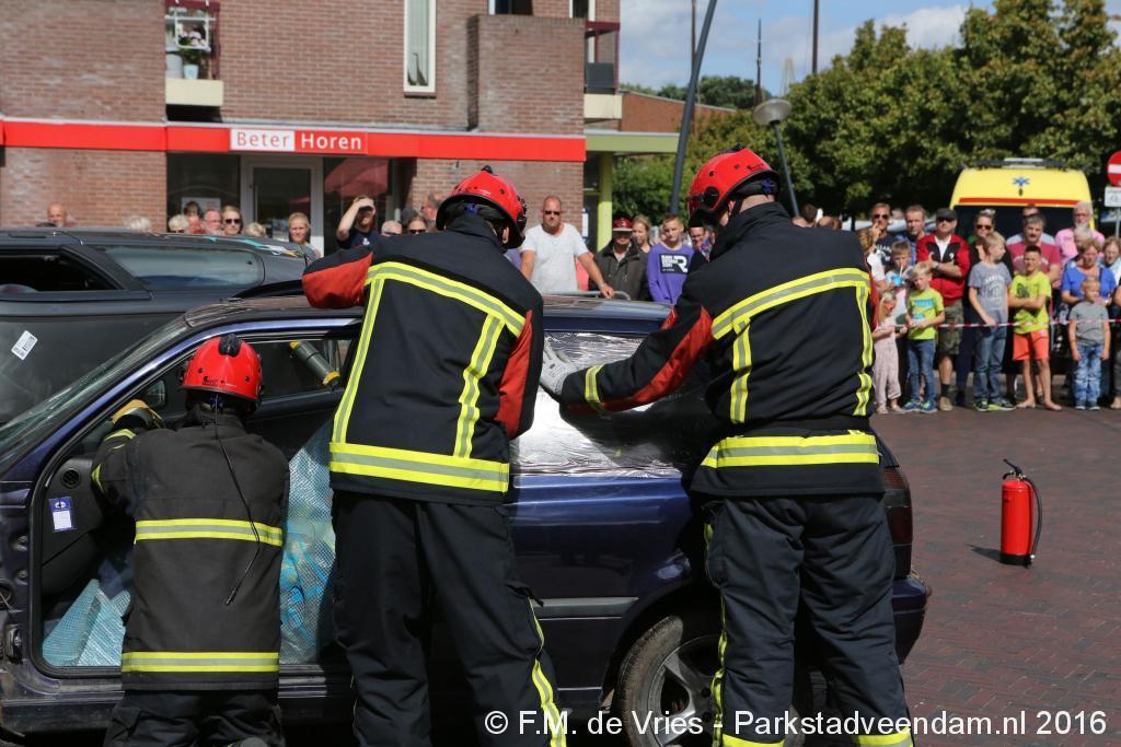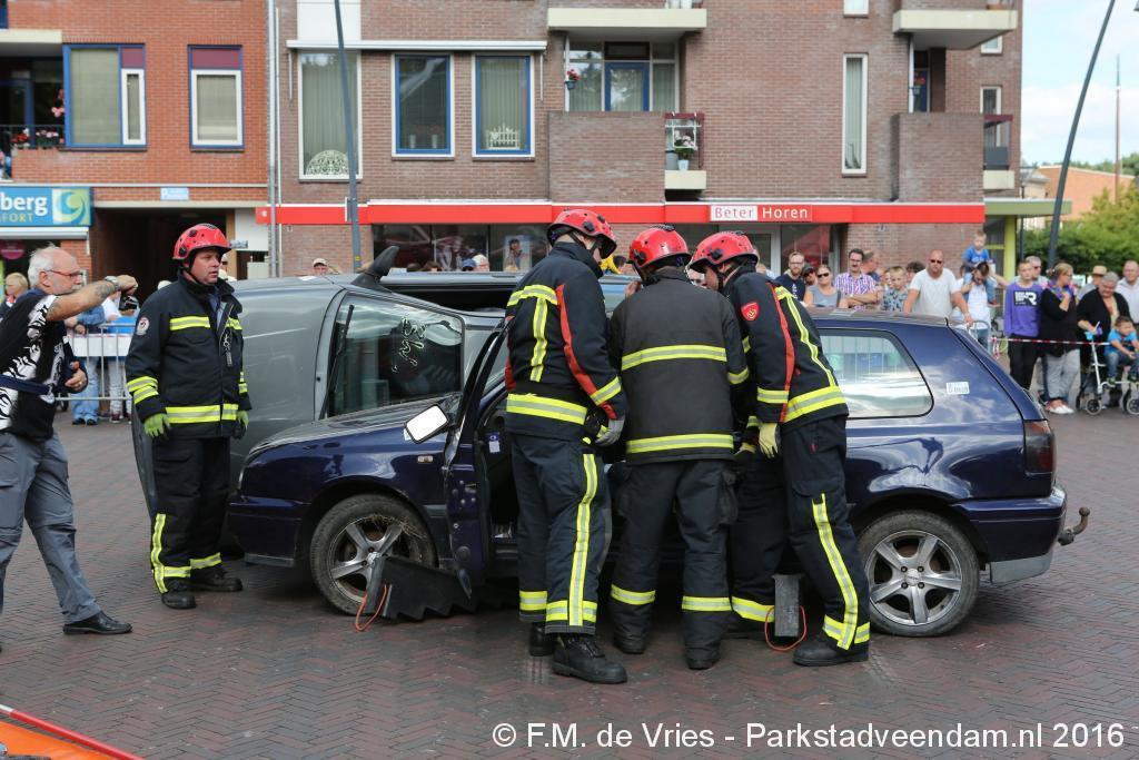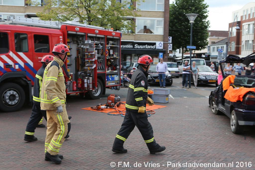 KERKPLEIN - Zaterdagmiddag tijdens de Pruiverij heeft de Veendammer brandweer zich gepresenteerd met al het materieel die zij tot hun beschikking hebben. Iedereen kon de wagens van binnen en van buiten bekijken en alle vragen die ze hadden stellen. Voor de kinderen was er de mogelijkheid om zelf een brand te blussen  De spuitgasten hebben een tweetal demonstraties gegeven van het bevrijden van slachtoffers uit een autowrak.