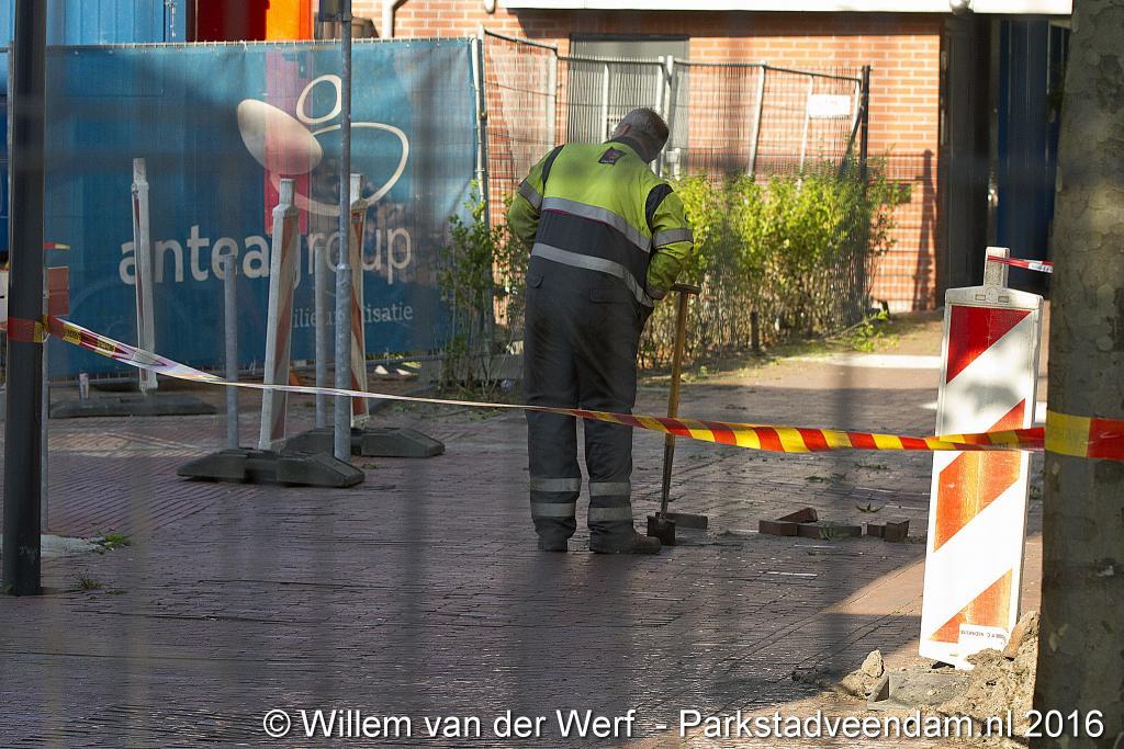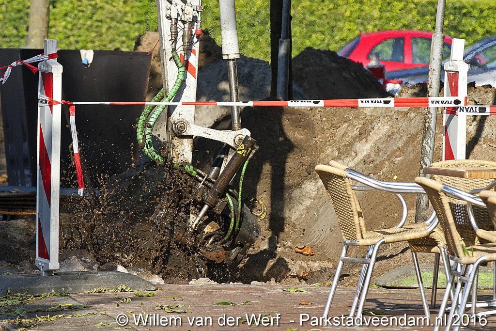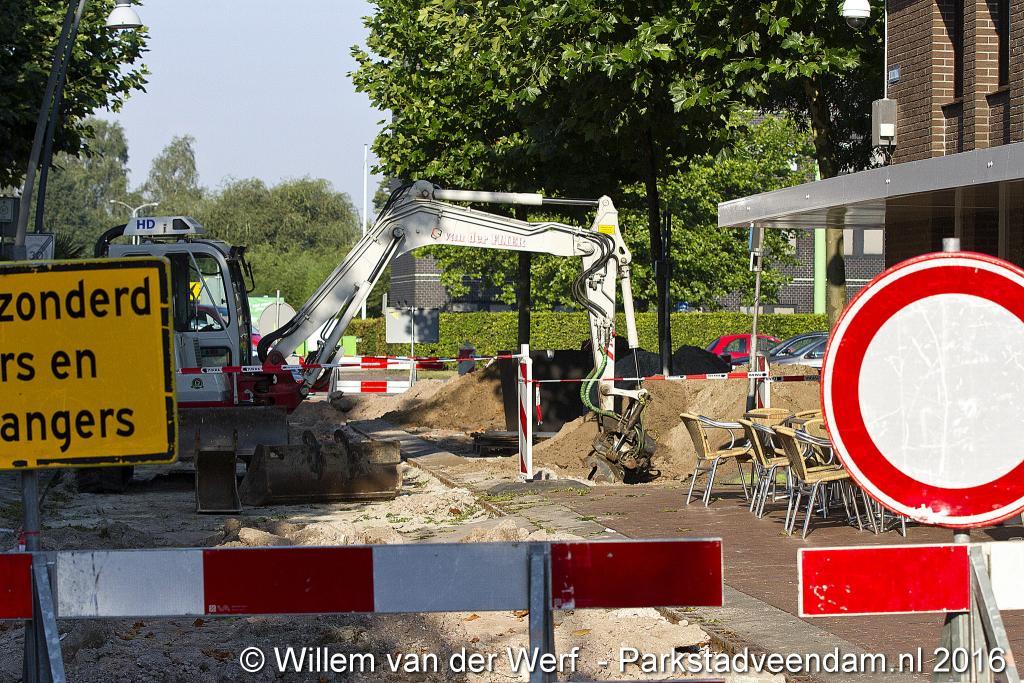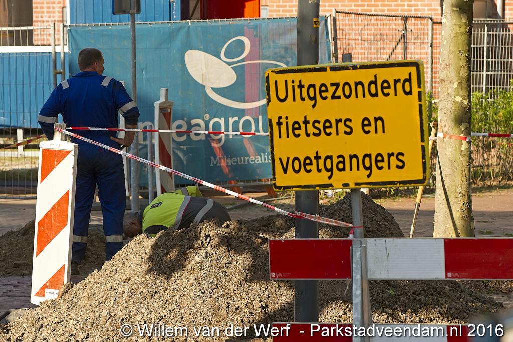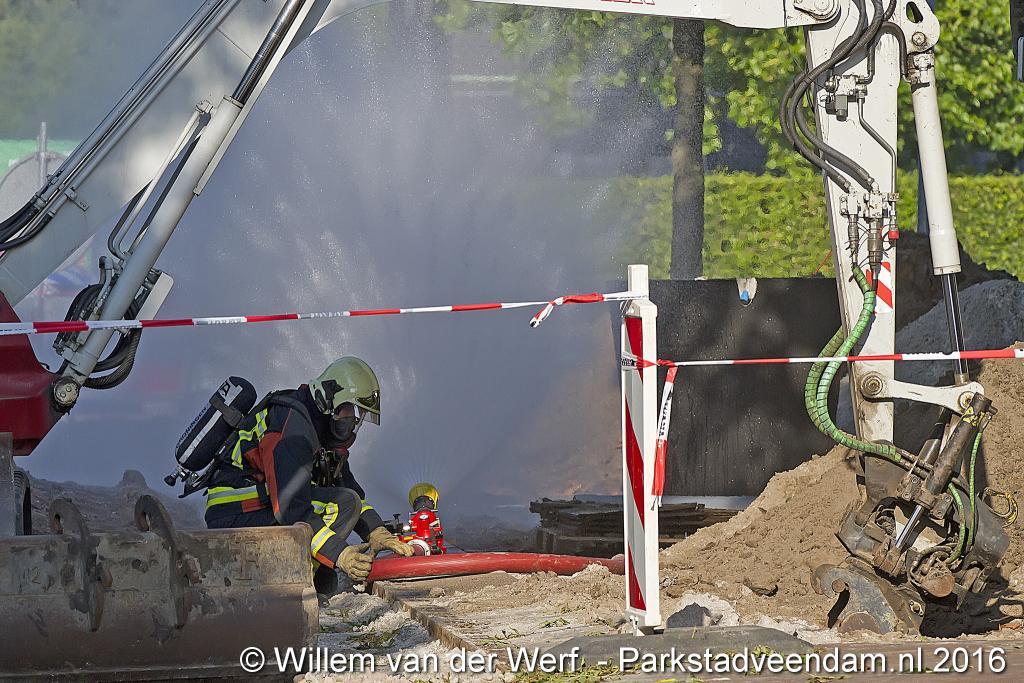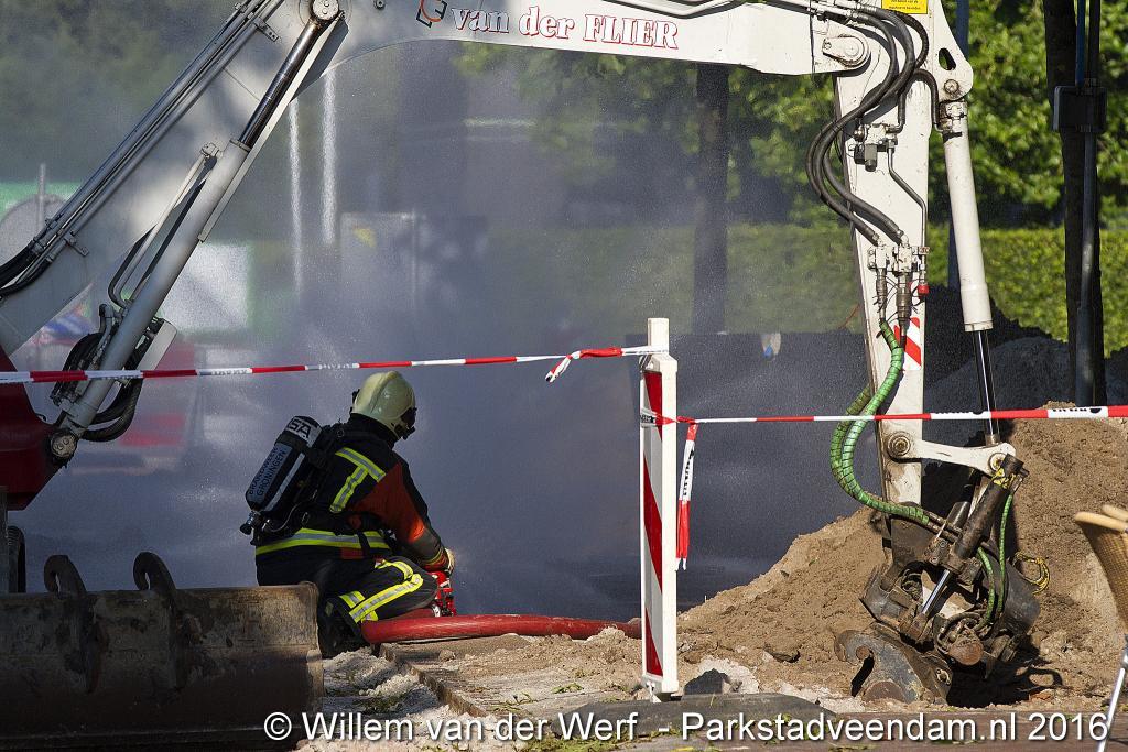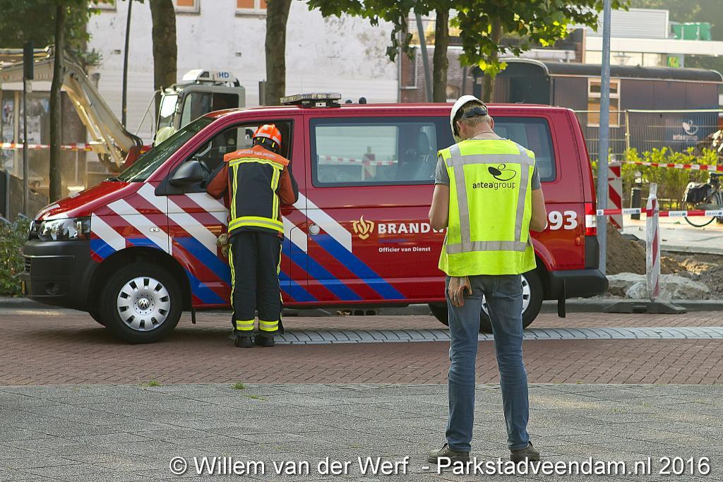 KERKSTRAAT – Vrijdagmorgen is bij de herinrichting van de Kerkstraat-West een gasleiding geraakt door een graafmachine. Dat gebeurde om half 9.