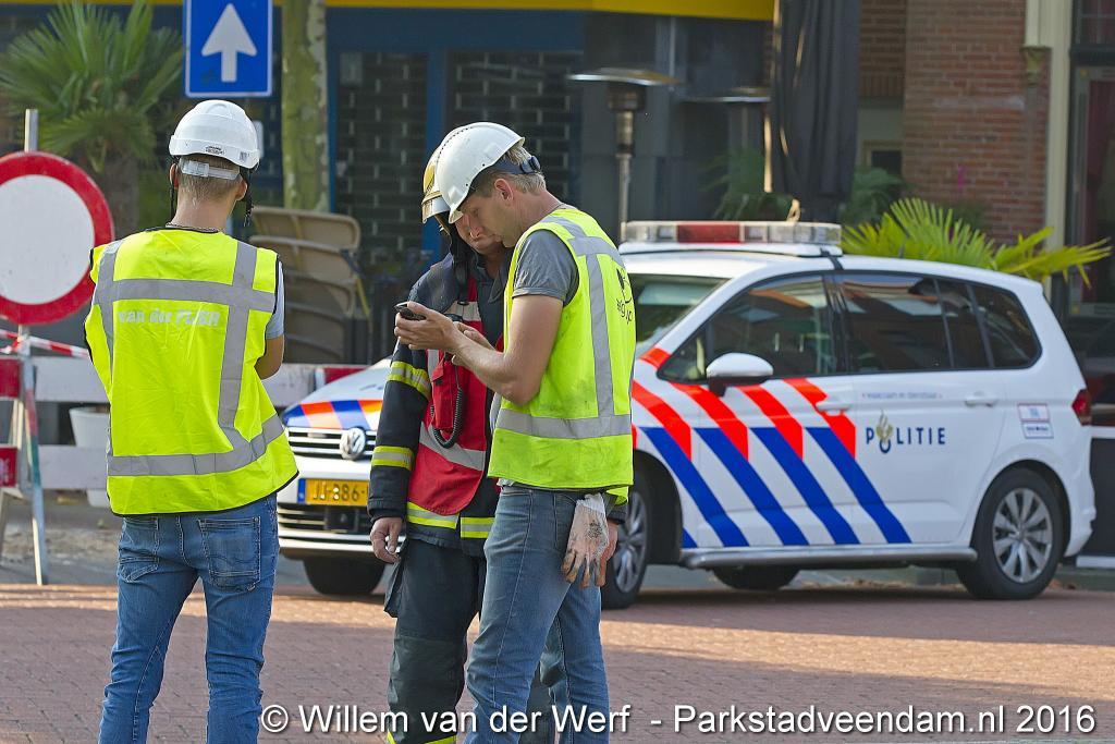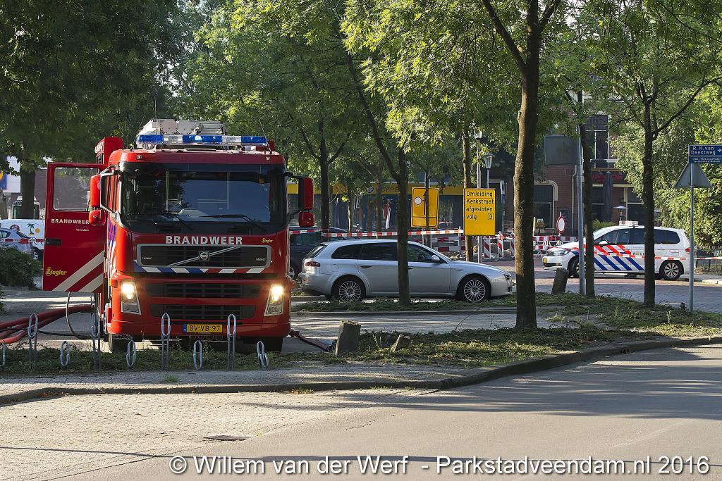 De politie en de brandweer zijn druk bezig om het gebied ter hoogte van de voormalige verlichtingswinkel De Fluitketel veilig te stellen met het plaatsen van een waterscherm. Enexis is druk bezig om de schade te herstellen.