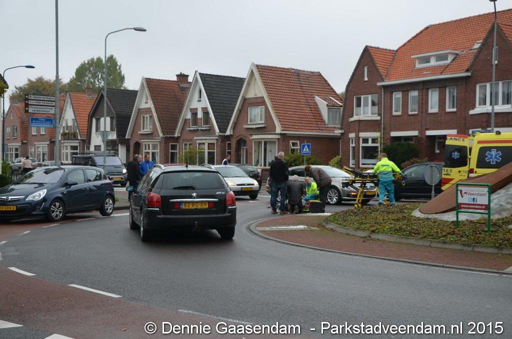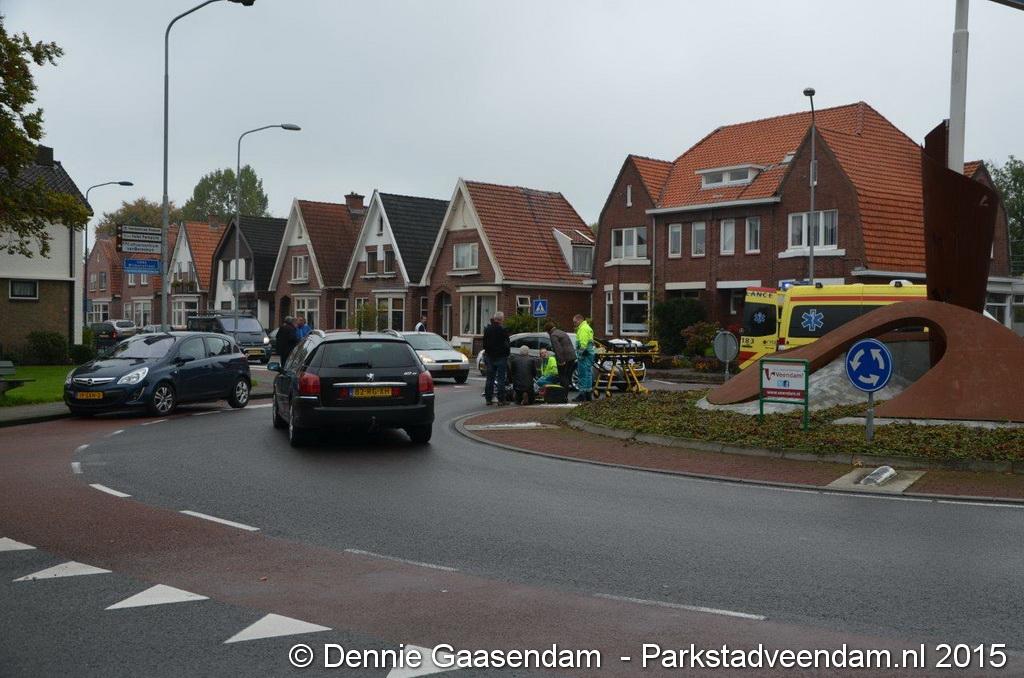 JACOB BRUGGEMALAAN  - Op de rotonde Jacob Bruggemalaan en de Ubbo Wilkenstraat in Veendam is zaterdag rond het middaguur een fietsster aangereden door een auto.