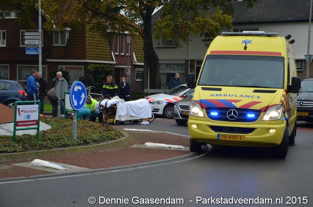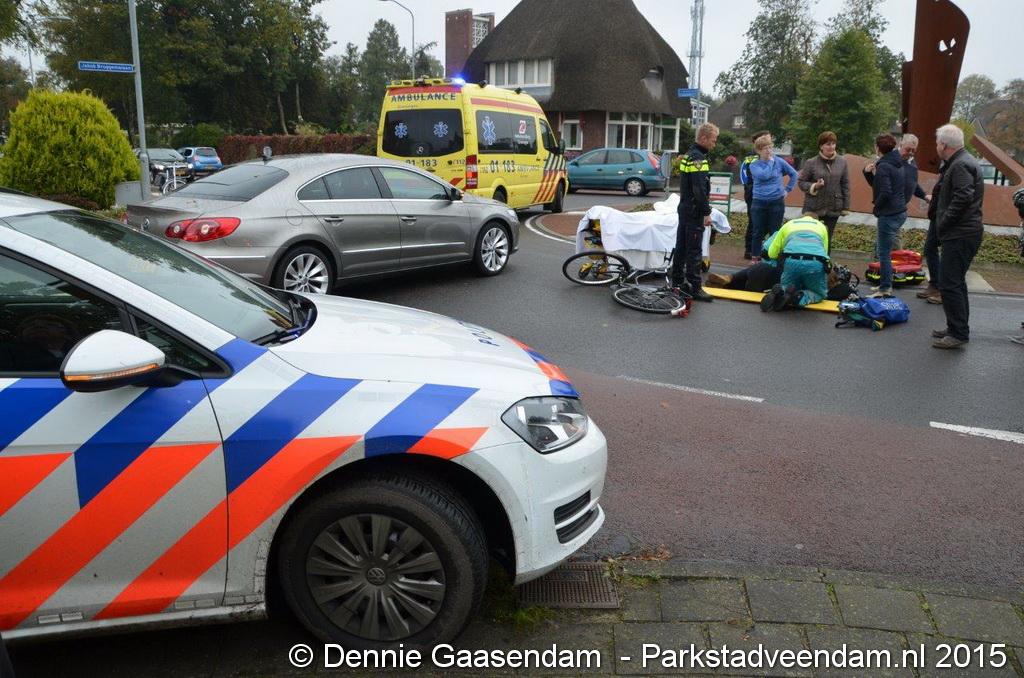 De fietsster kreeg op de rotonde geen voorrang. Het slachtoffer kwam met een harde klap op het wegdek terecht. Omstanders verleenden eerste hulp. Ambulancemedewerkers namen de hulpverlening over waarna het slachtoffer naar het ziekenhuis is gebracht. De politie maakte van het ongeval een registratie.