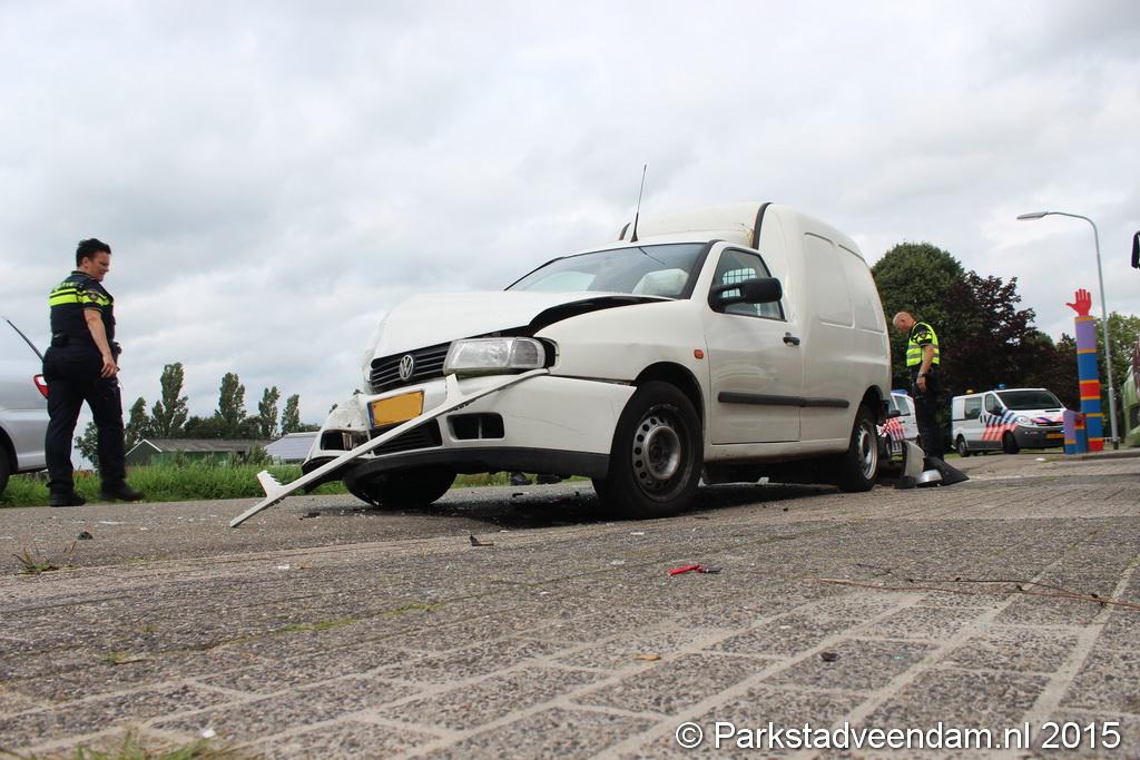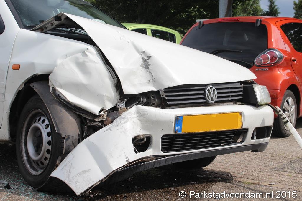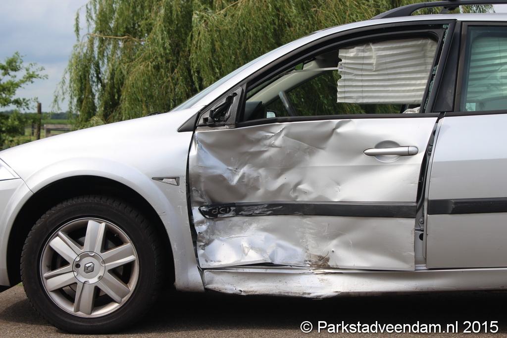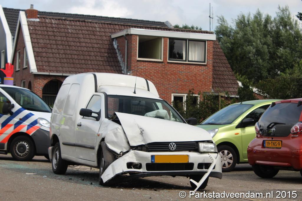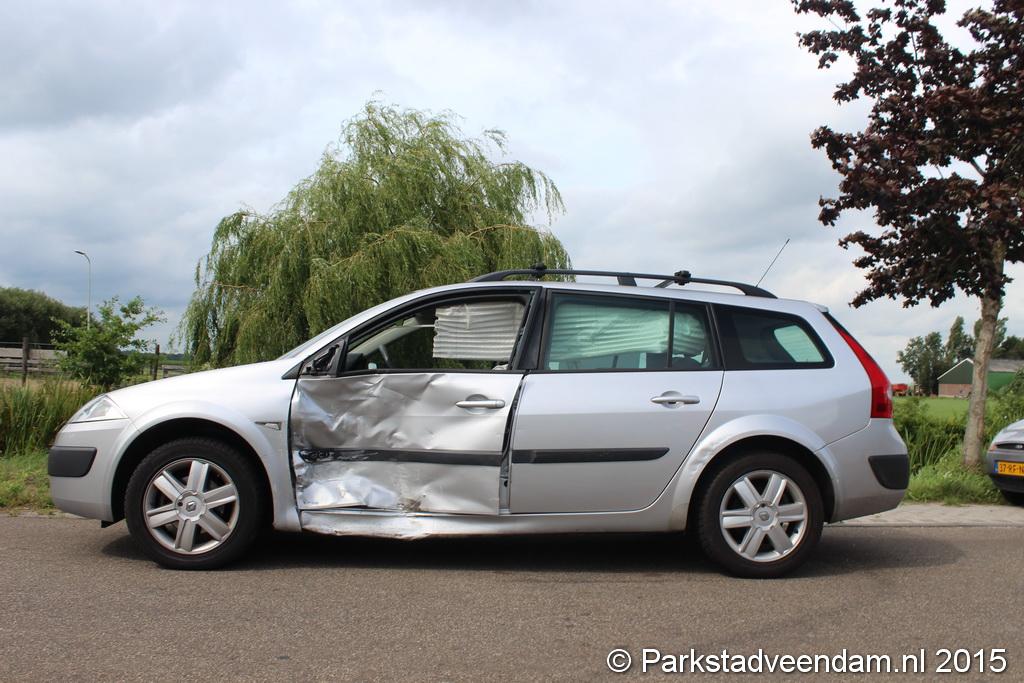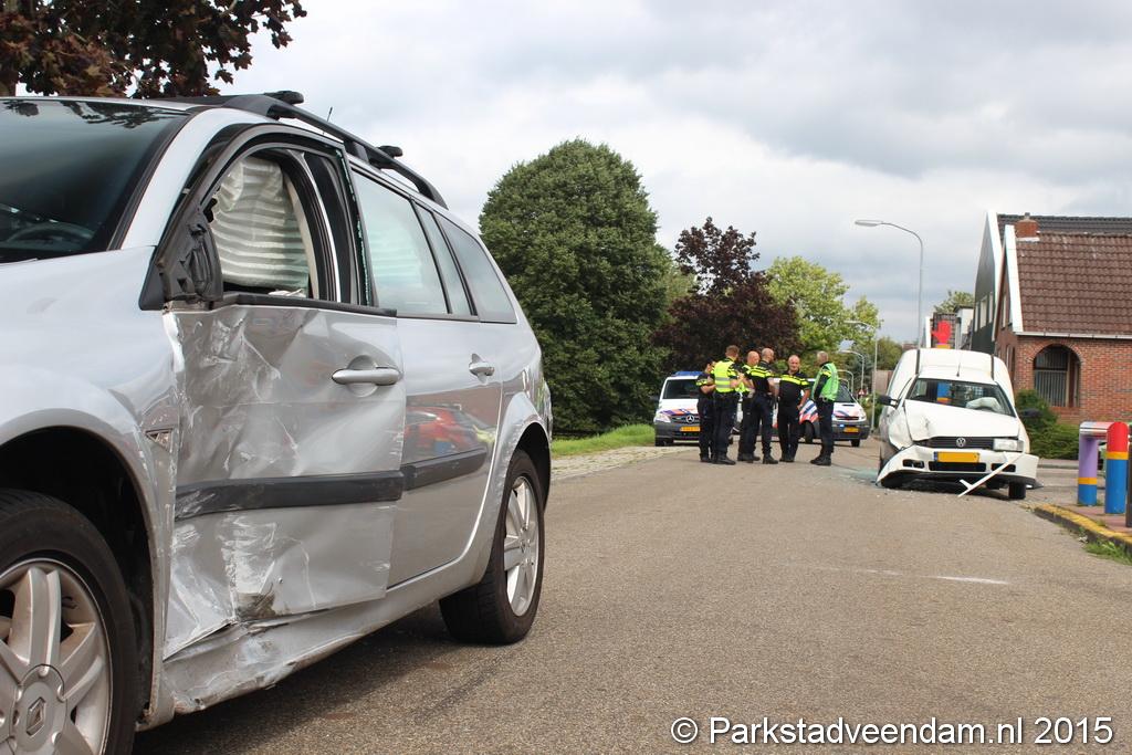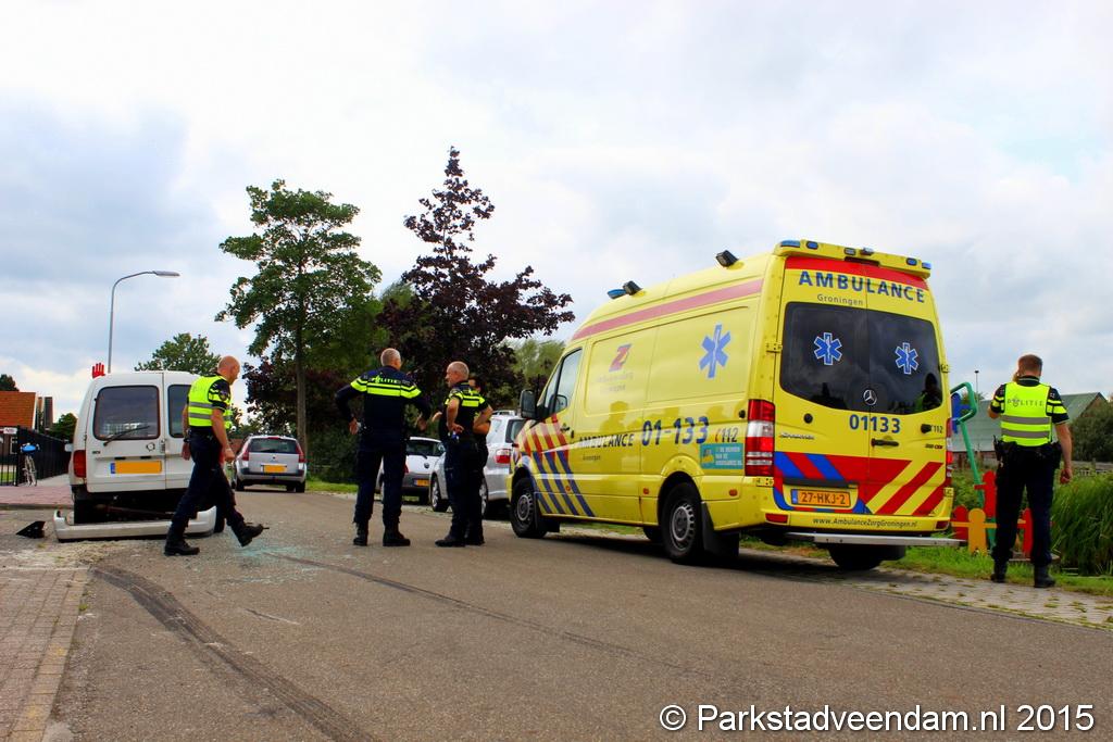Een 27-jarige vrouw uit het Drentse Nieuwediep met haar kind van 2,5 jaar (grijze Renault) had de knipperlicht naar rechts uit staan. De bestuur van een VW Caddy, een 53-jarige man uit Veendam, passeerde links om er voor bij te gaan. Onverwachts sloeg de vrouw links af een parkeerplaats op. Hierdoor ontstond een forse aanrijding. De aanhangwagen achter de Caddy had zich vanachteren in de auto geboord. De man is met nekklachten naar het ziekenhuis vervoerd. Ook de vrouw en de baby zijn ter controle naar het ziekenhuis gebracht. Het is verkeer is omgeleid en de ongevalsanalyse dienst heeft alles vastgelegd
