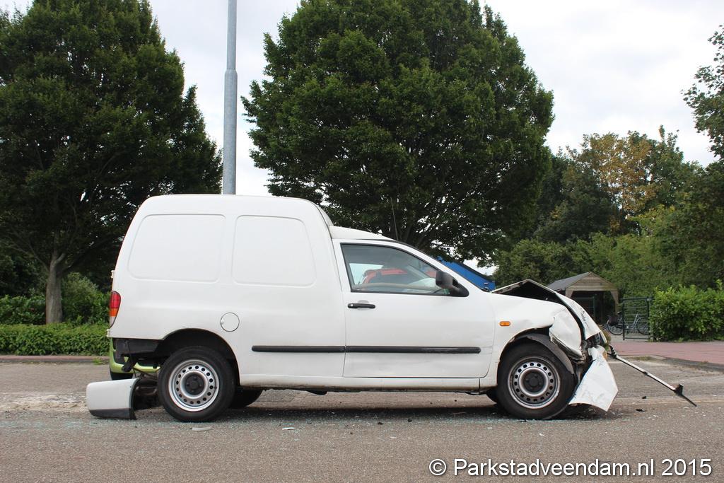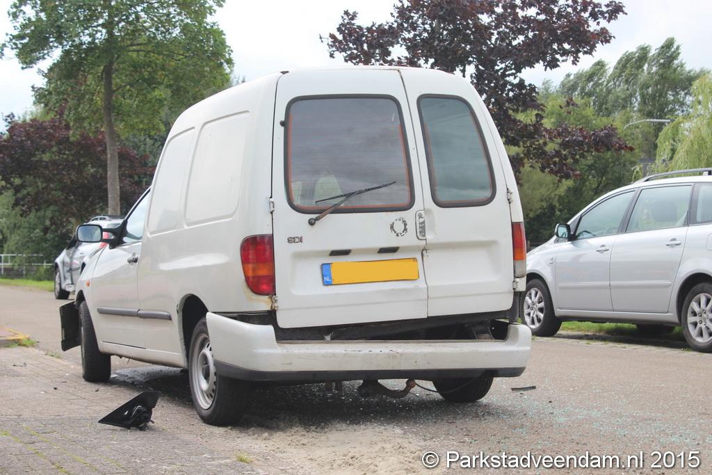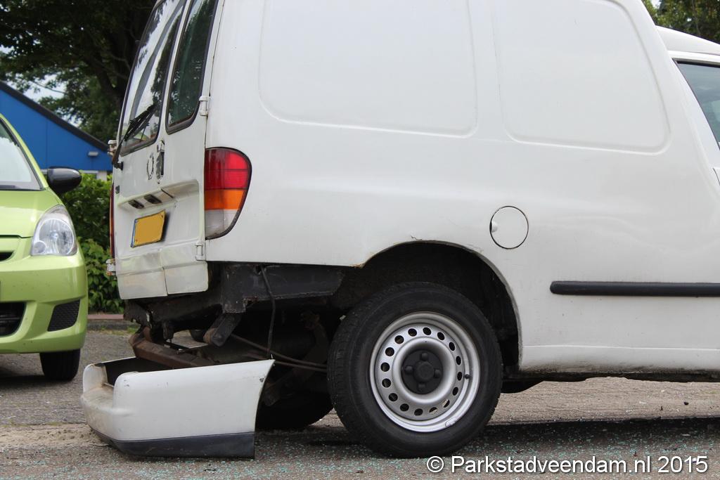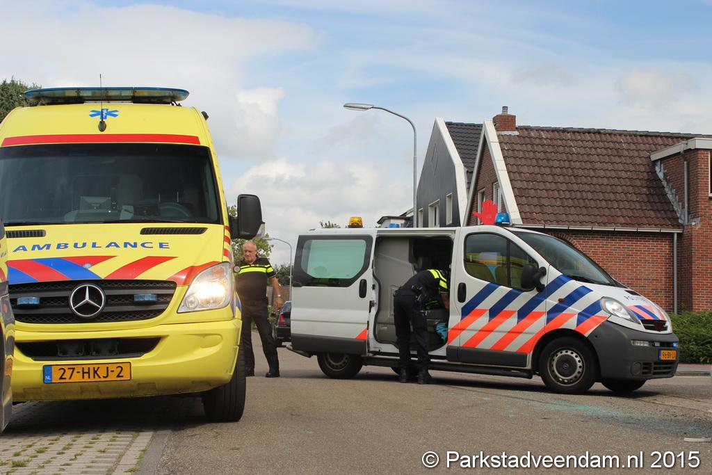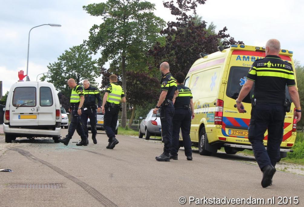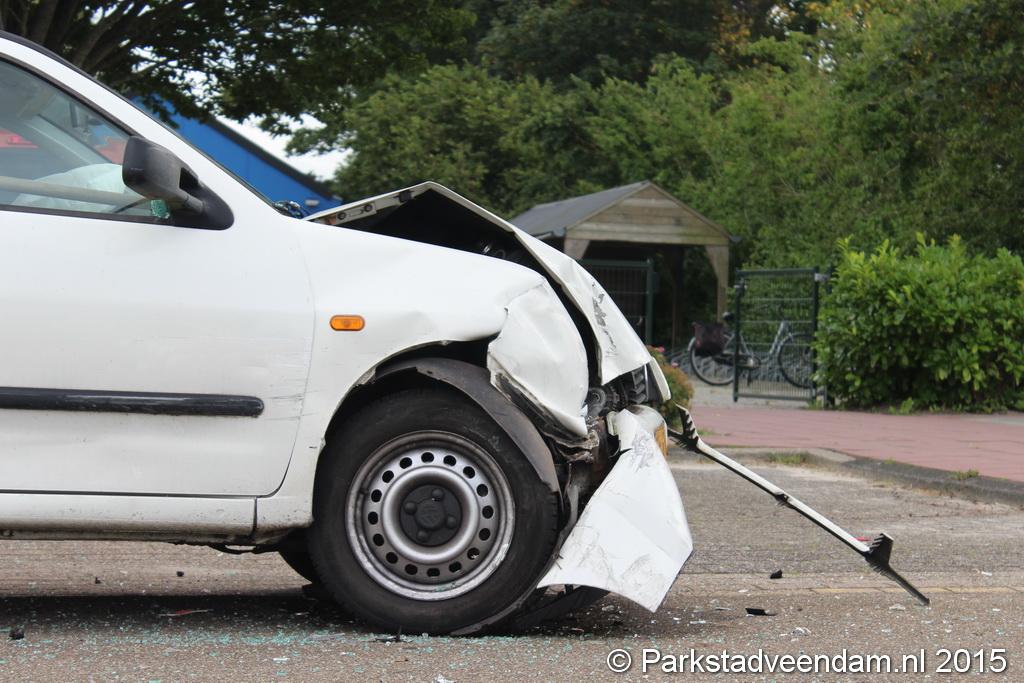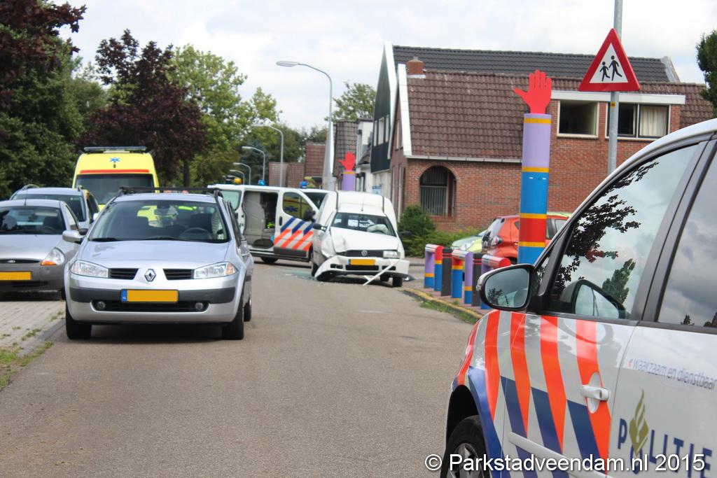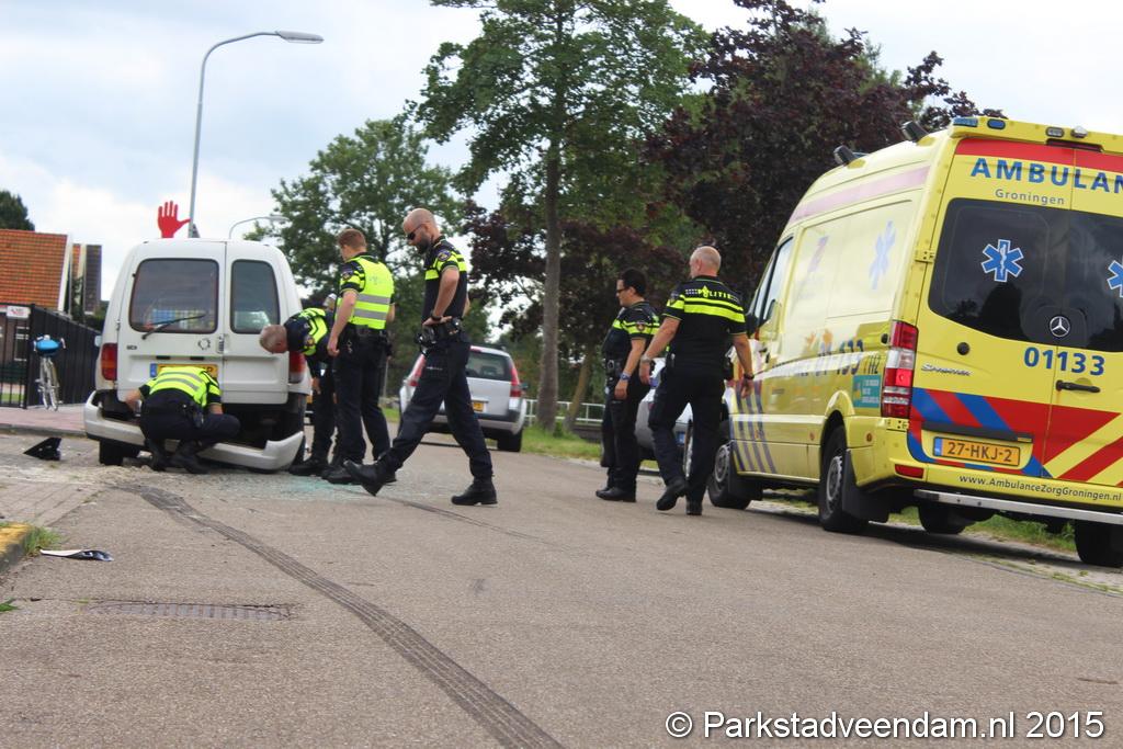 Een 27-jarige vrouw uit het Drentse Nieuwediep met haar kind van 2,5 jaar (grijze Renault) had de knipperlicht naar rechts uit staan. De bestuur van een VW Caddy, een 53-jarige man uit Veendam, passeerde links om er voor bij te gaan. Onverwachts sloeg de vrouw links af een parkeerplaats op. Hierdoor ontstond een forse aanrijding. De aanhangwagen achter de Caddy had zich vanachteren in de auto geboord. De man is met nekklachten naar het ziekenhuis vervoerd. Ook de vrouw en de baby zijn ter controle naar het ziekenhuis gebracht. Het is verkeer is omgeleid en de ongevalsanalyse dienst heeft alles vastgelegd