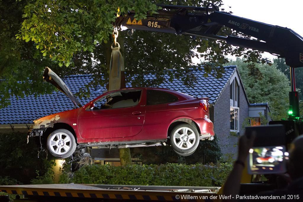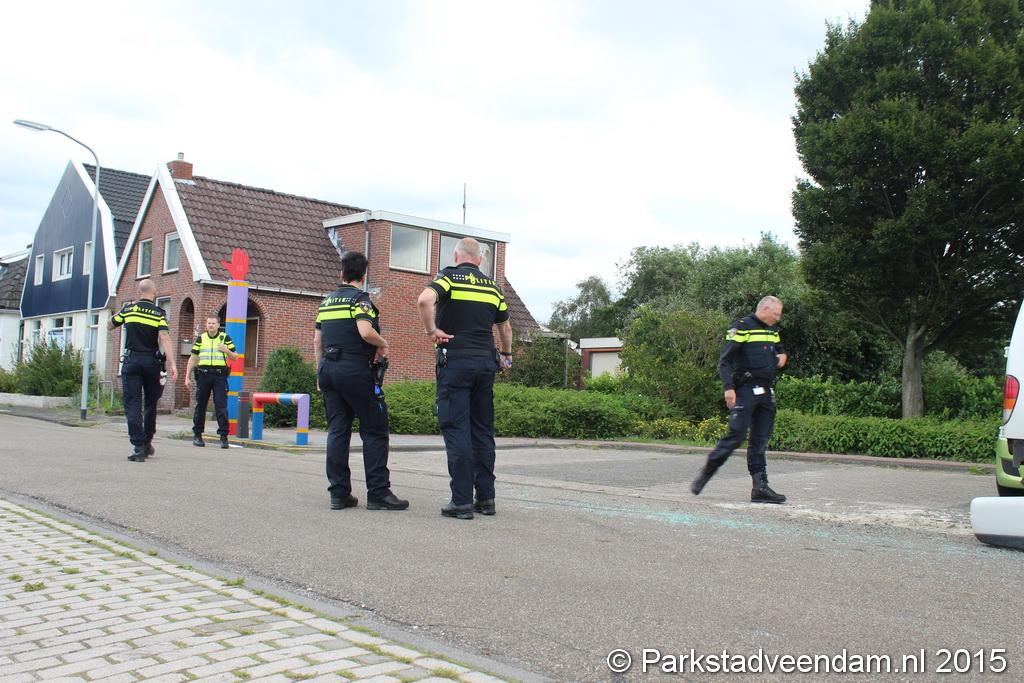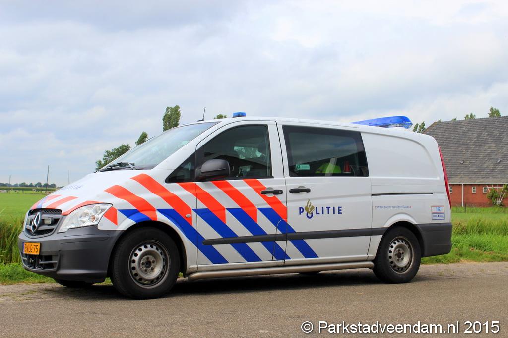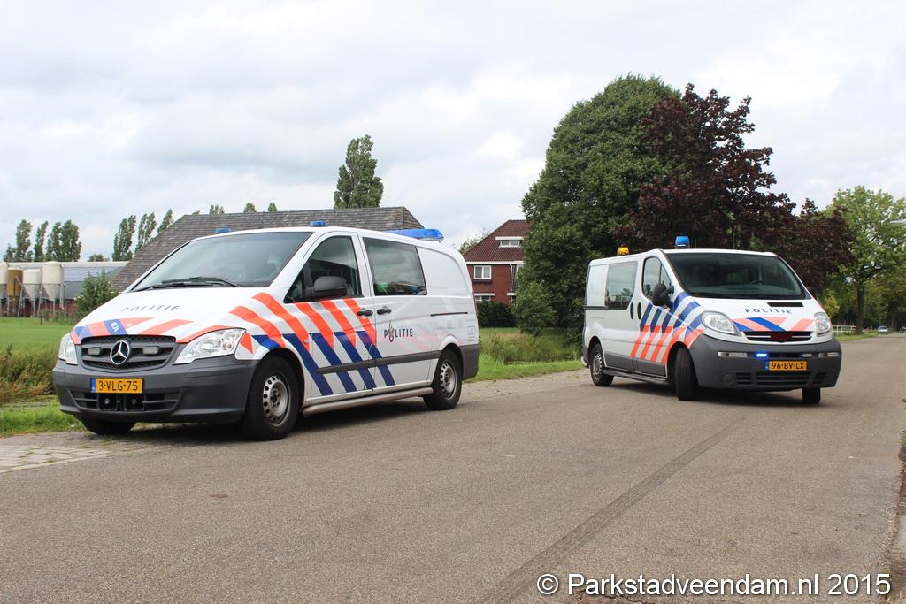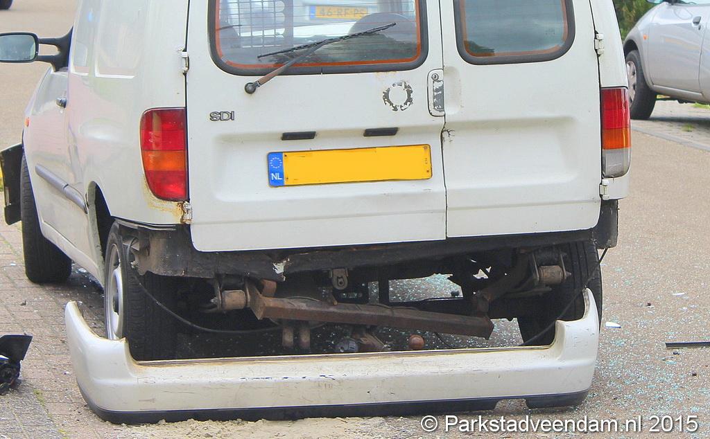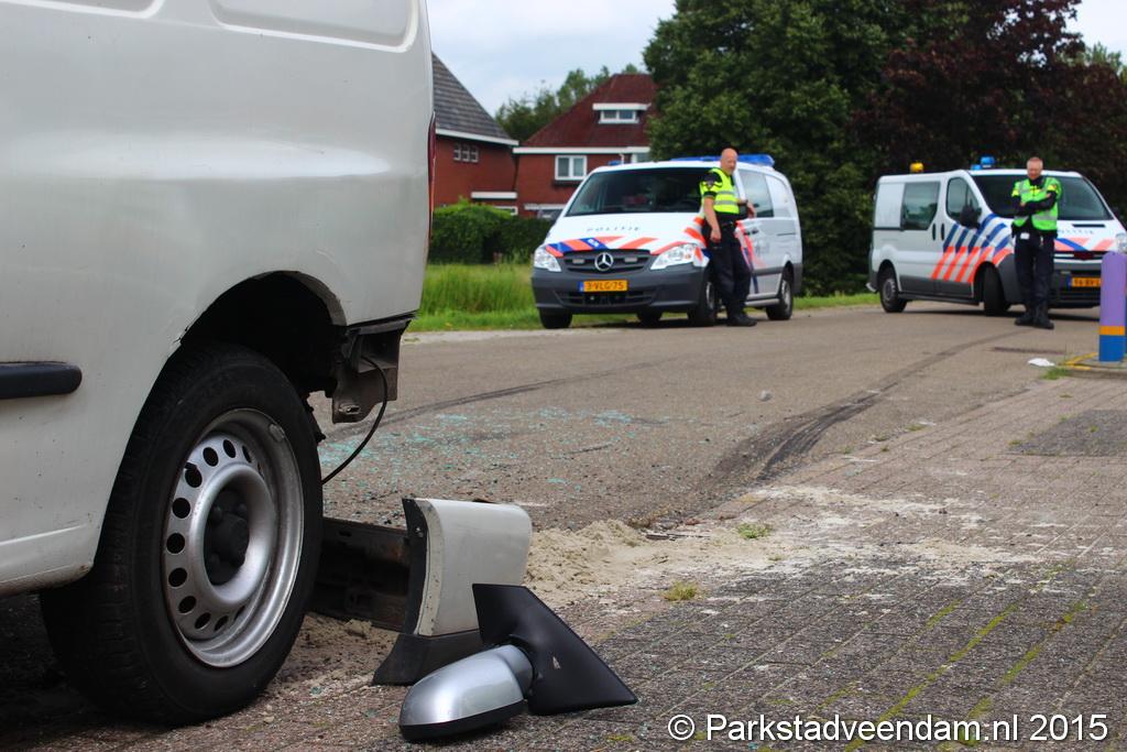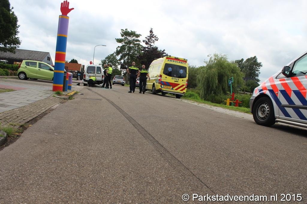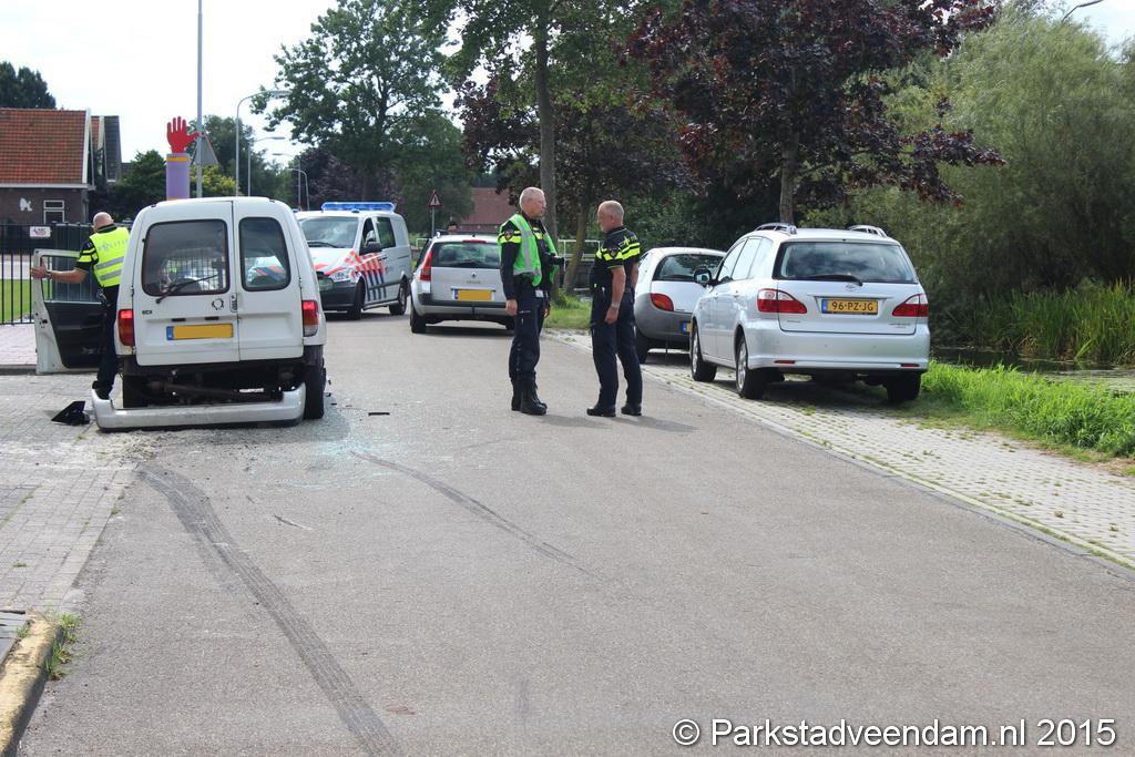 Een 27-jarige vrouw uit het Drentse Nieuwediep met haar kind van 2,5 jaar (grijze Renault) had de knipperlicht naar rechts uit staan. De bestuur van een VW Caddy, een 53-jarige man uit Veendam, passeerde links om er voor bij te gaan. Onverwachts sloeg de vrouw links af een parkeerplaats op. Hierdoor ontstond een forse aanrijding. De aanhangwagen achter de Caddy had zich vanachteren in de auto geboord. De man is met nekklachten naar het ziekenhuis vervoerd. Ook de vrouw en de baby zijn ter controle naar het ziekenhuis gebracht. Het is verkeer is omgeleid en de ongevalsanalyse dienst heeft alles vastgelegd