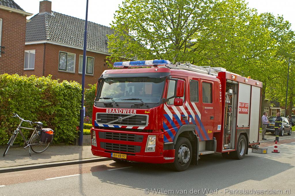 De brandweer van Veendam is zich gereed aan het maken, voor vertrek naar de kazerne